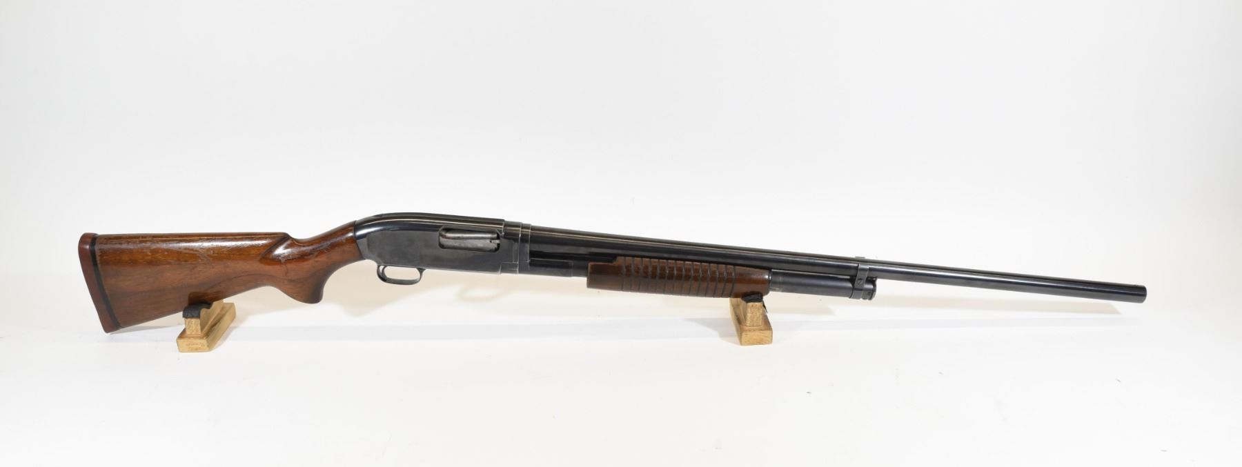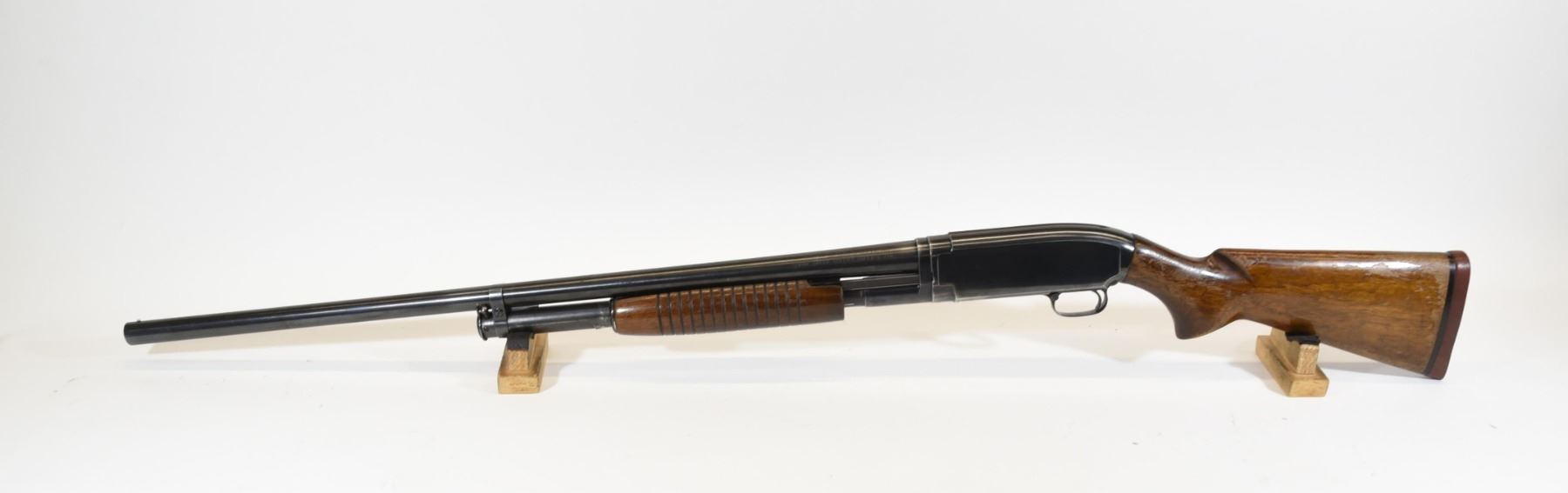 Non-restricted, 12ga 3", 29" fixed full choke barrel, SN 1619452. Wood stock has many dents and scratches with chipping finish, but no cracks. Bluing is going grey in places with several scratches, but is good overall considering age. Bore is good.