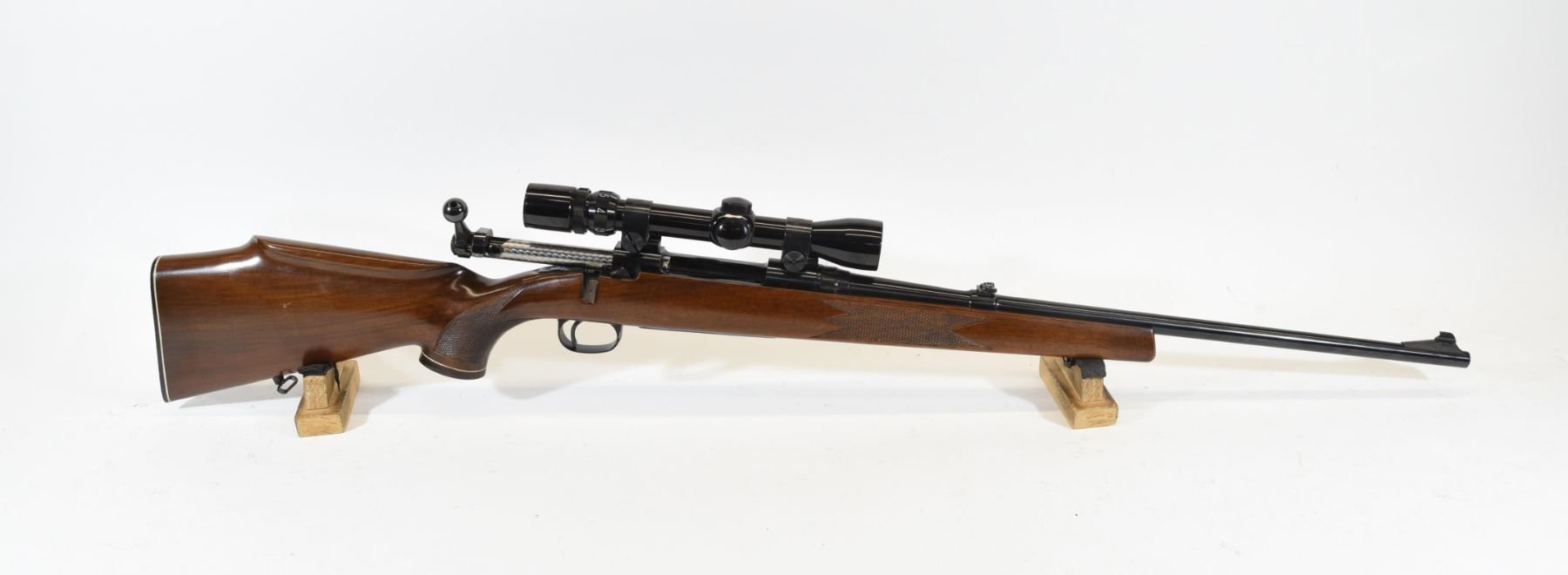 Non-restricted, 308Win, bolt action, SN 63571. Wood stock has several light scratches and dents, but is good overall. Bluing has a few very light marks. Bore is excellent. Rifle has a Bushnell Banner II 3x-9x mounted.
