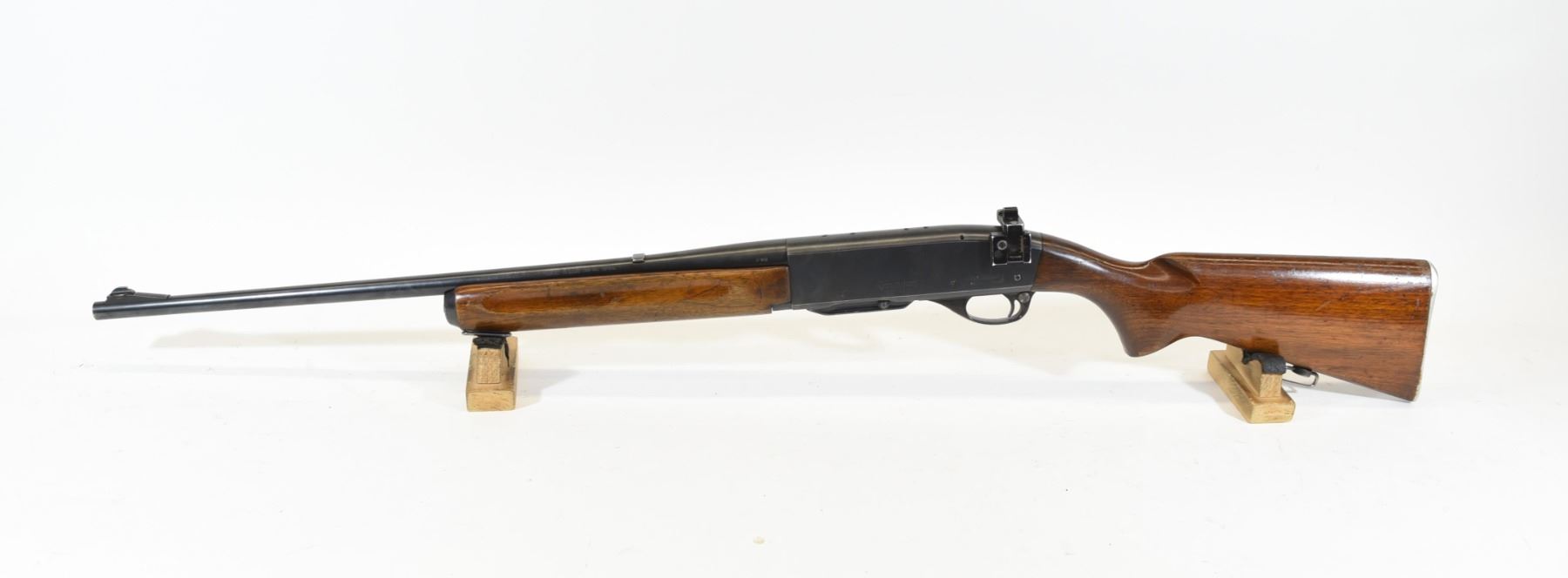 Non-restricted, 30-06SPRG, semi-auto, SN 52145. Wood stock has many dents and scratches as well as a crack on the right side of the rear grip. Bluing has many scratches, but is good overall. Bore is good. Rifle has a Williams peep sight.