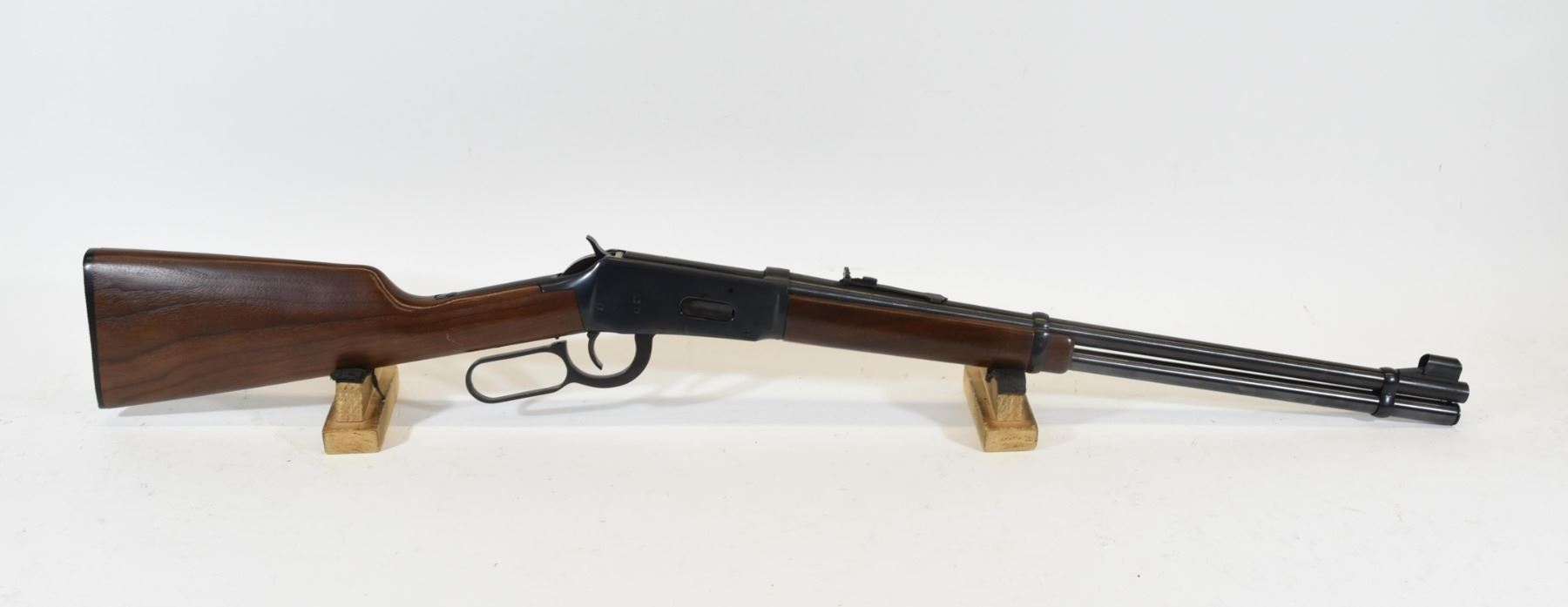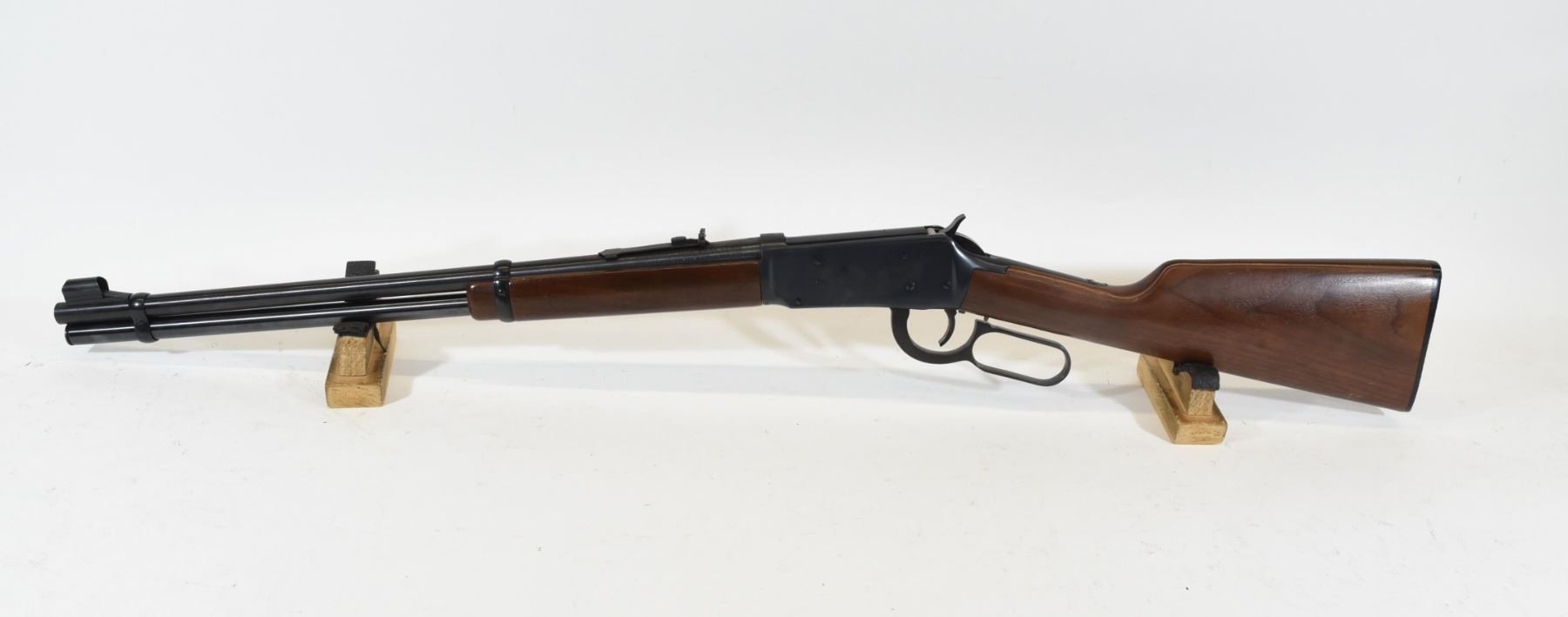 Non-restricted, 30-30Win, lever action, SN 4454724. Wood stock has several scratches, but is in good condition. Bluing has some light speckling of rust near the muzzle and one patch of light surface rust on the mag tube. Bore is good.