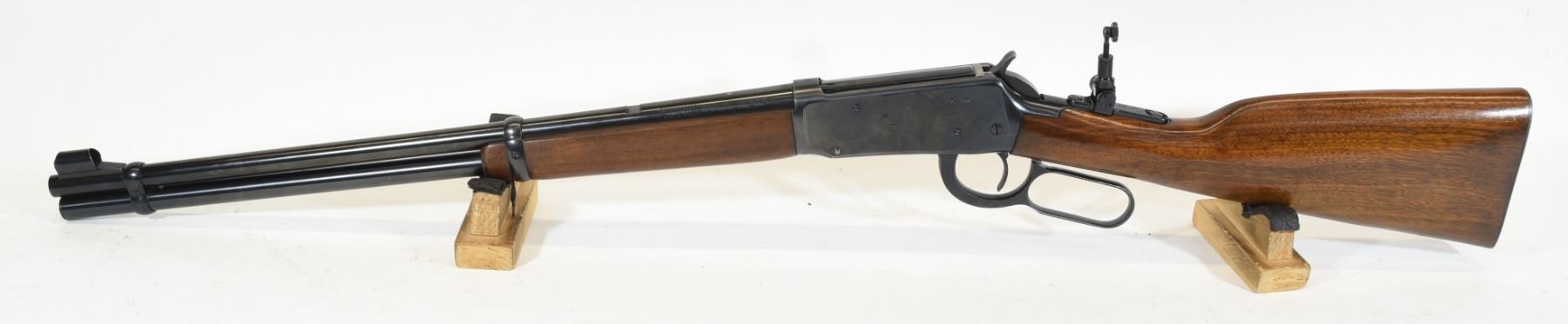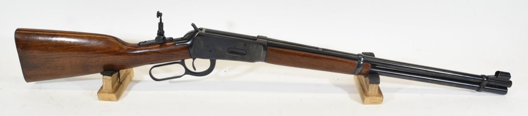 Non-restricted, 32Win SPL, lever action, SN 2406002 Wood stock has several scratches and fading finish on the foregrip, but is good overall. Bluing has several scratches, but is good overall. Bore is excellent. Rifle has a Marble Arms flip-up aperture sight.