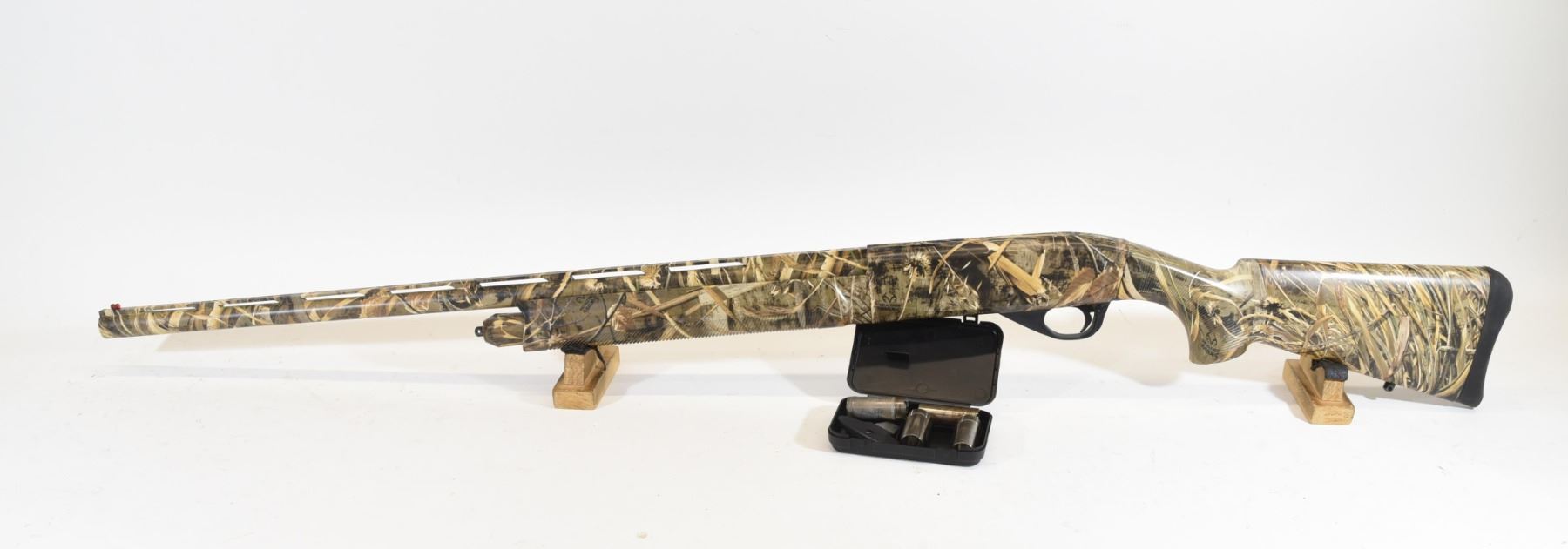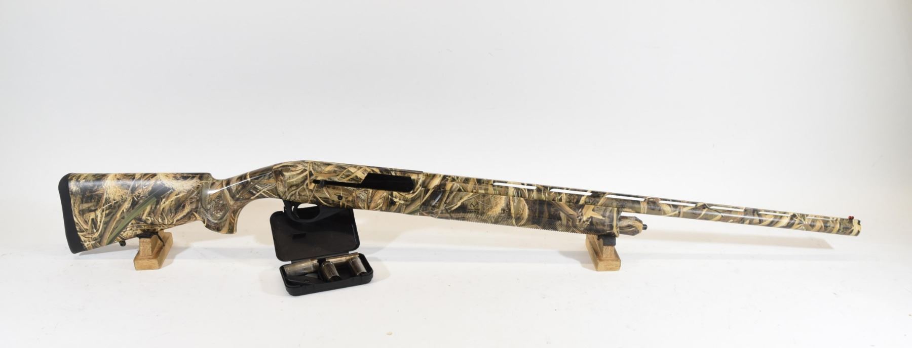 Non-restricted, 12ga 3", semi-auto, SN 19-00286. Synthetic camo stock is in good condition. Barrel camo finish is in god condition. Bore is good. Comes with 5 choke tubes and choke wrench.
