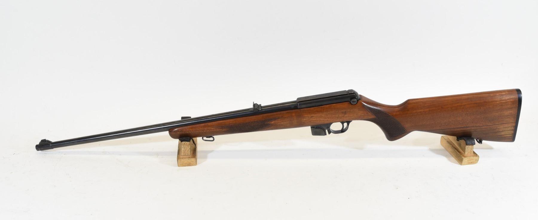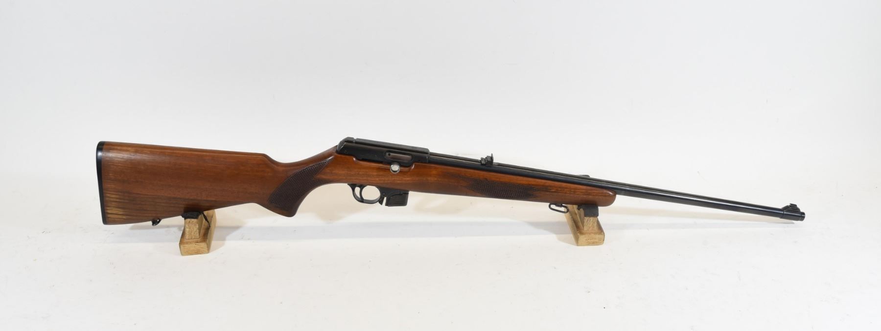 Non-restricted, 22LR, semi-auto, SN 07235. Wood stock has a few small marks, but is good overall. Wood stock has several small marks, but is good overall. Bore is good.