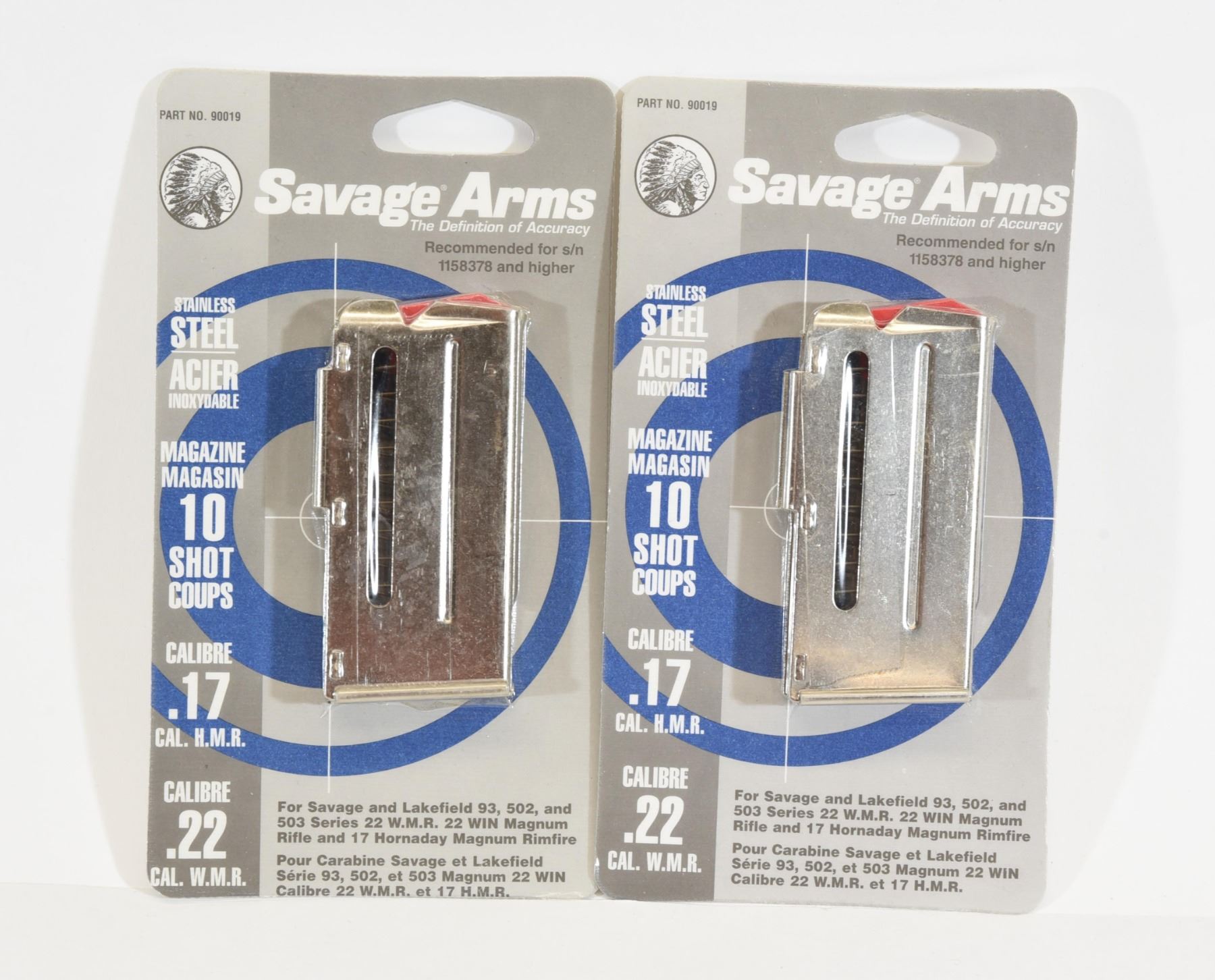 Two magazines for Savage/Lakefield 93, 502, and 503 series 22WMR rifle and 17HMR rimfire.