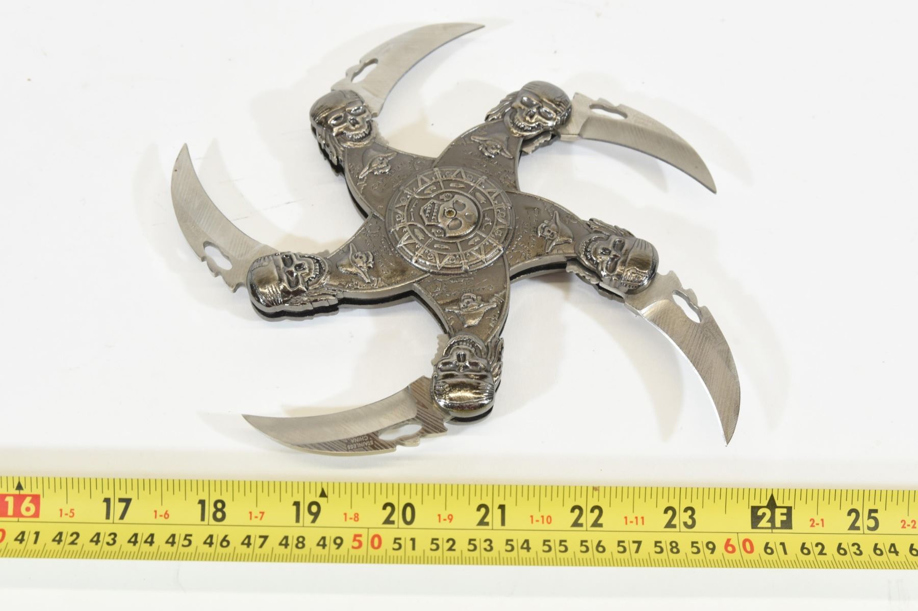 Stainless steel knife 8-1/4". Blade length is 2". Stainless steel blades made in China.