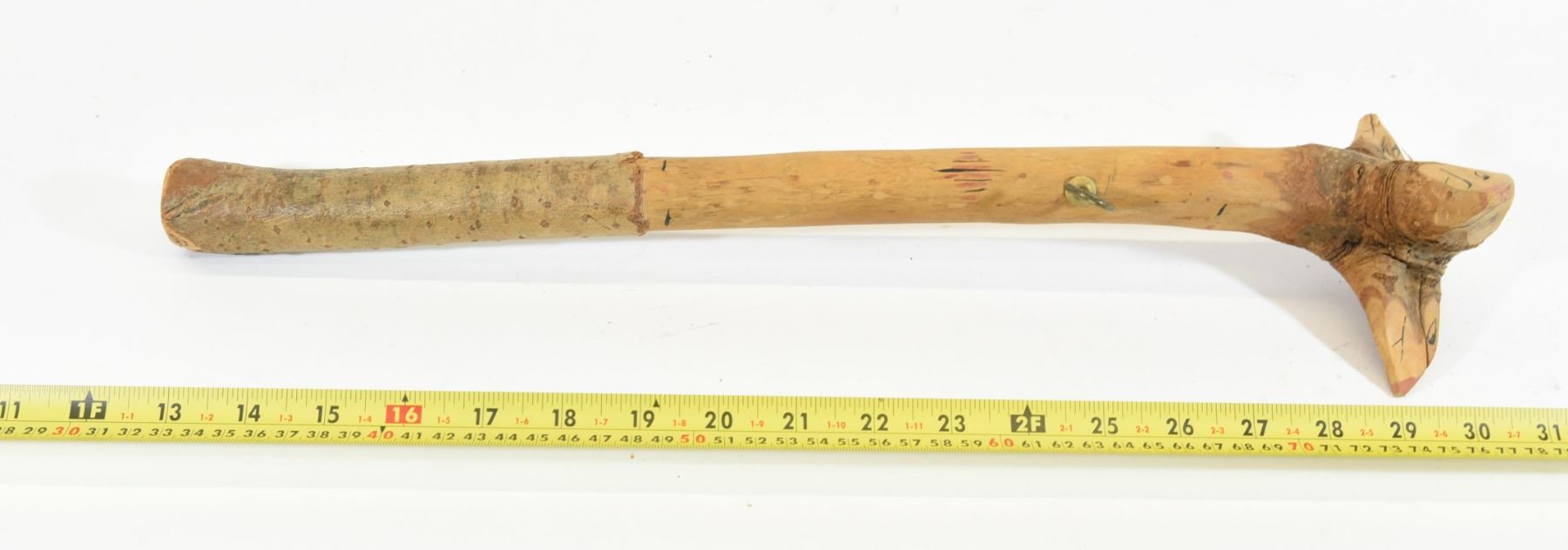Hand carved and painted. 18" long.