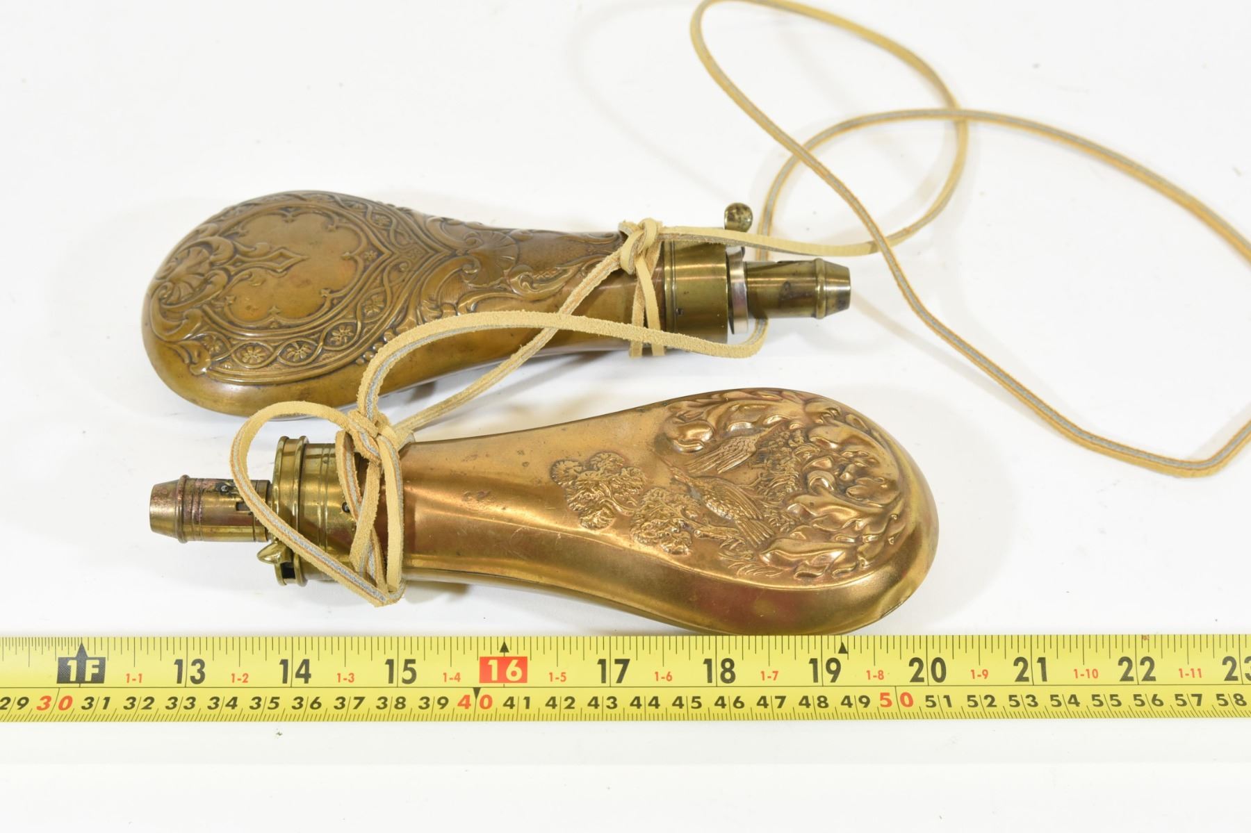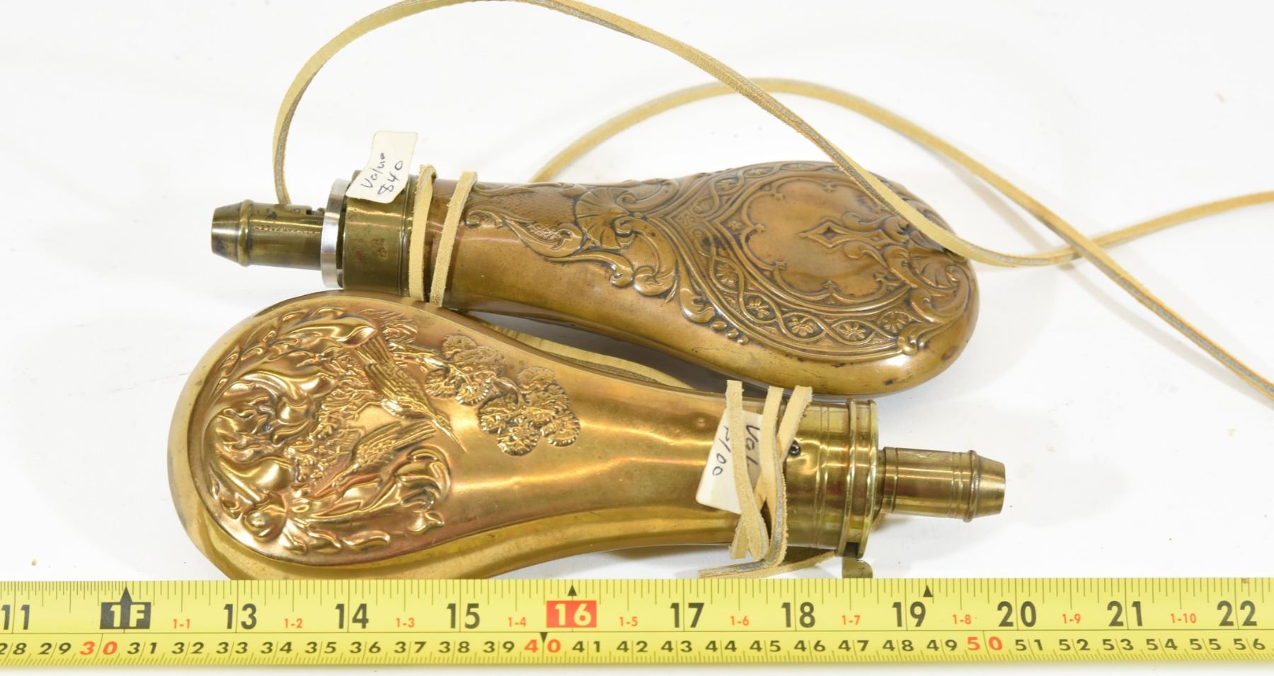 Lot 1063 2 Brass Embossed Antique Powder/Shot Flask