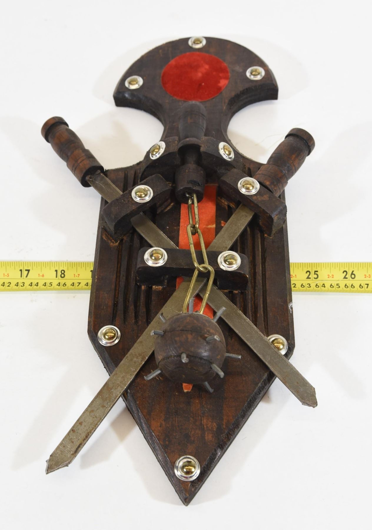 Lot 1093 Repro Wood Hanging Plaque With Medieval Weapons
