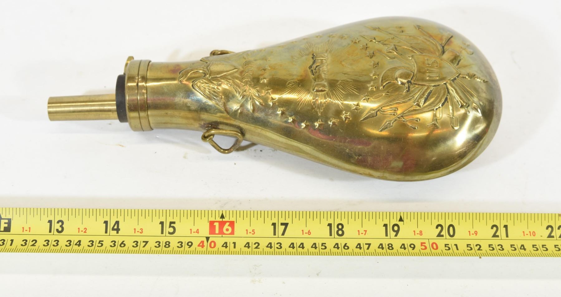 Lot 1144 Brass Embossed Antique Powder/Shot Flask