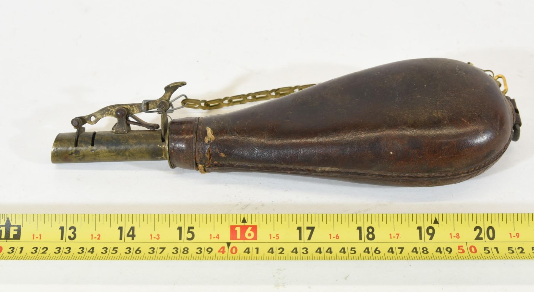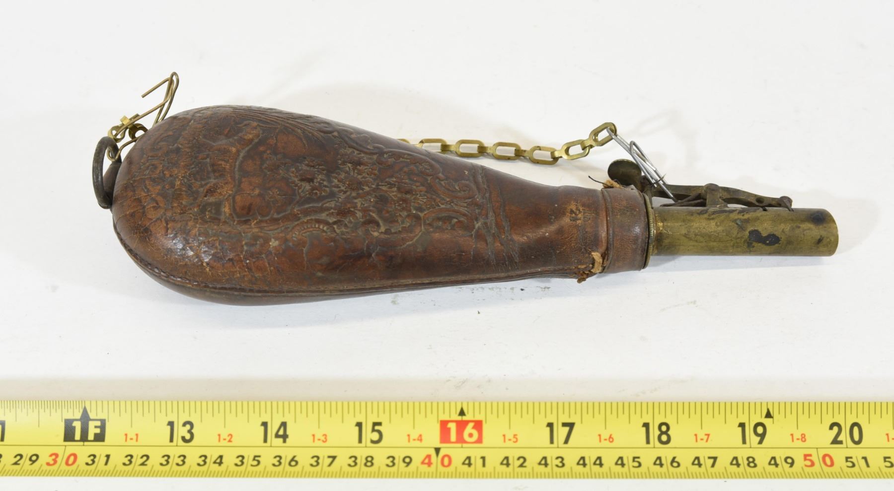 Lot 1146 Leather Embossed Antique Powder/Shot Flask