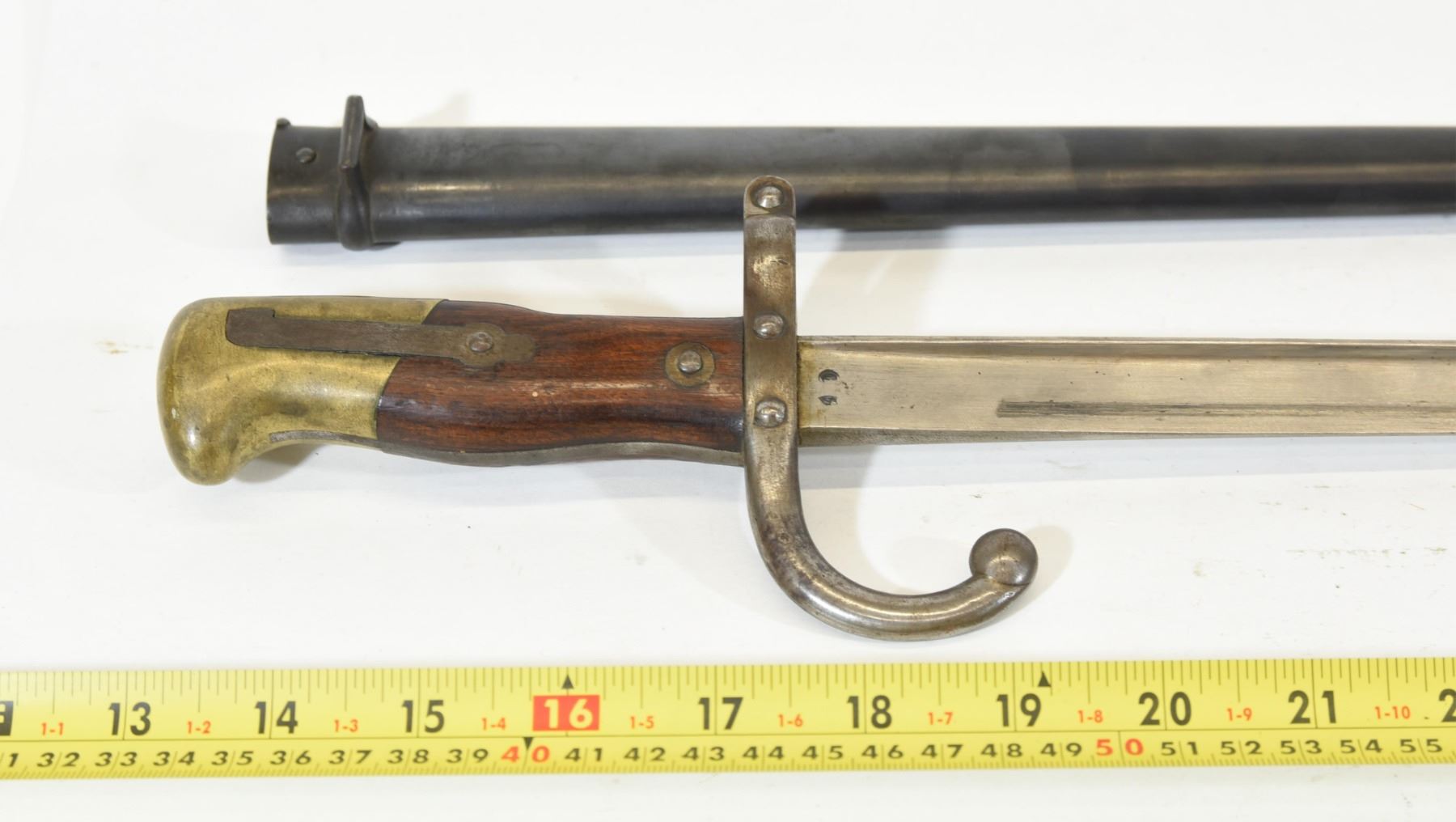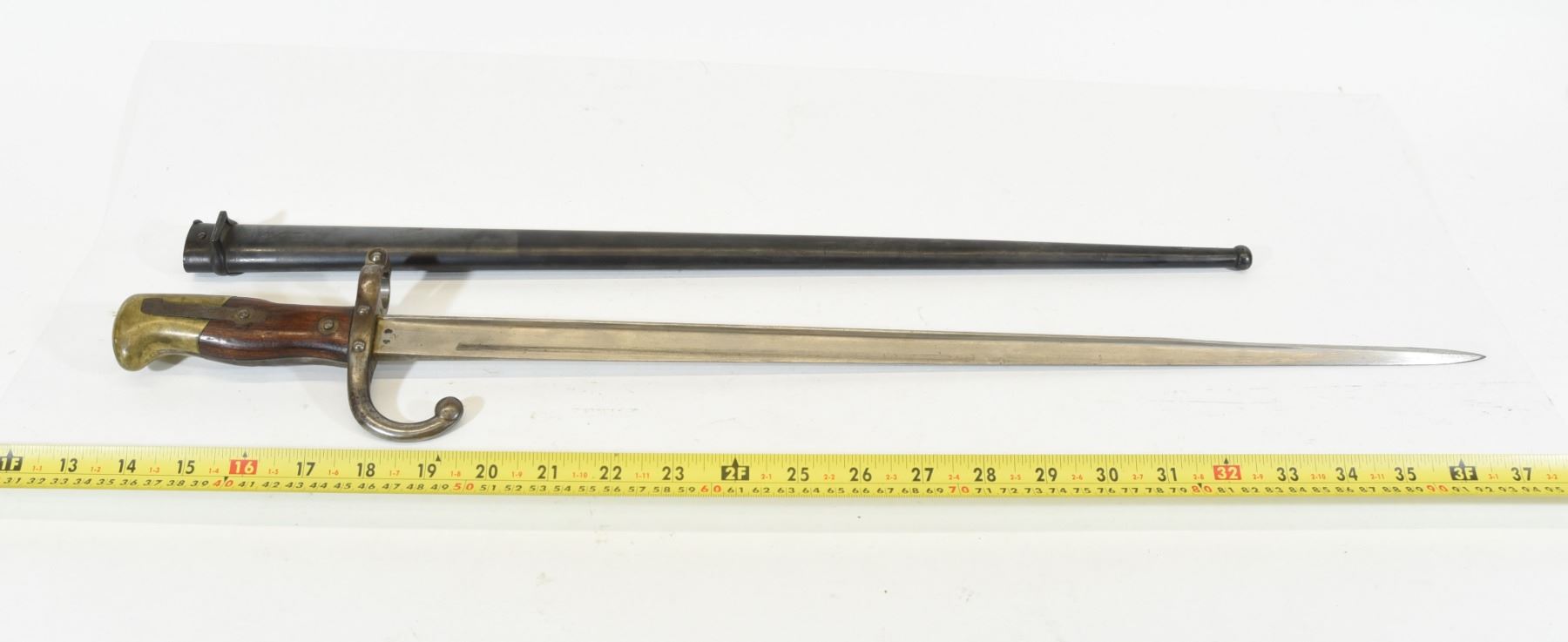 Mre d'Armes de St Etienne Fabre 1878 baïonnette with sheath. Serial number for baïonnette is 19549 and for sheath is 73680. Blade is 52.3cm long