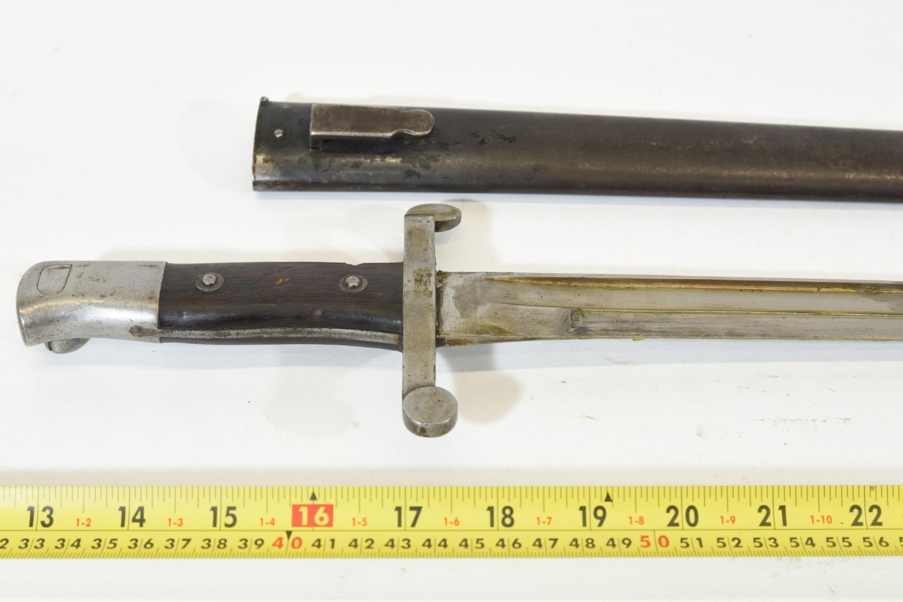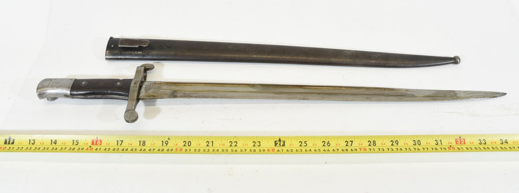 Mauser 88 bayonette with sheath. Serial number on bayonette is E755 and X184 on sheath. Blade is 47cm long.