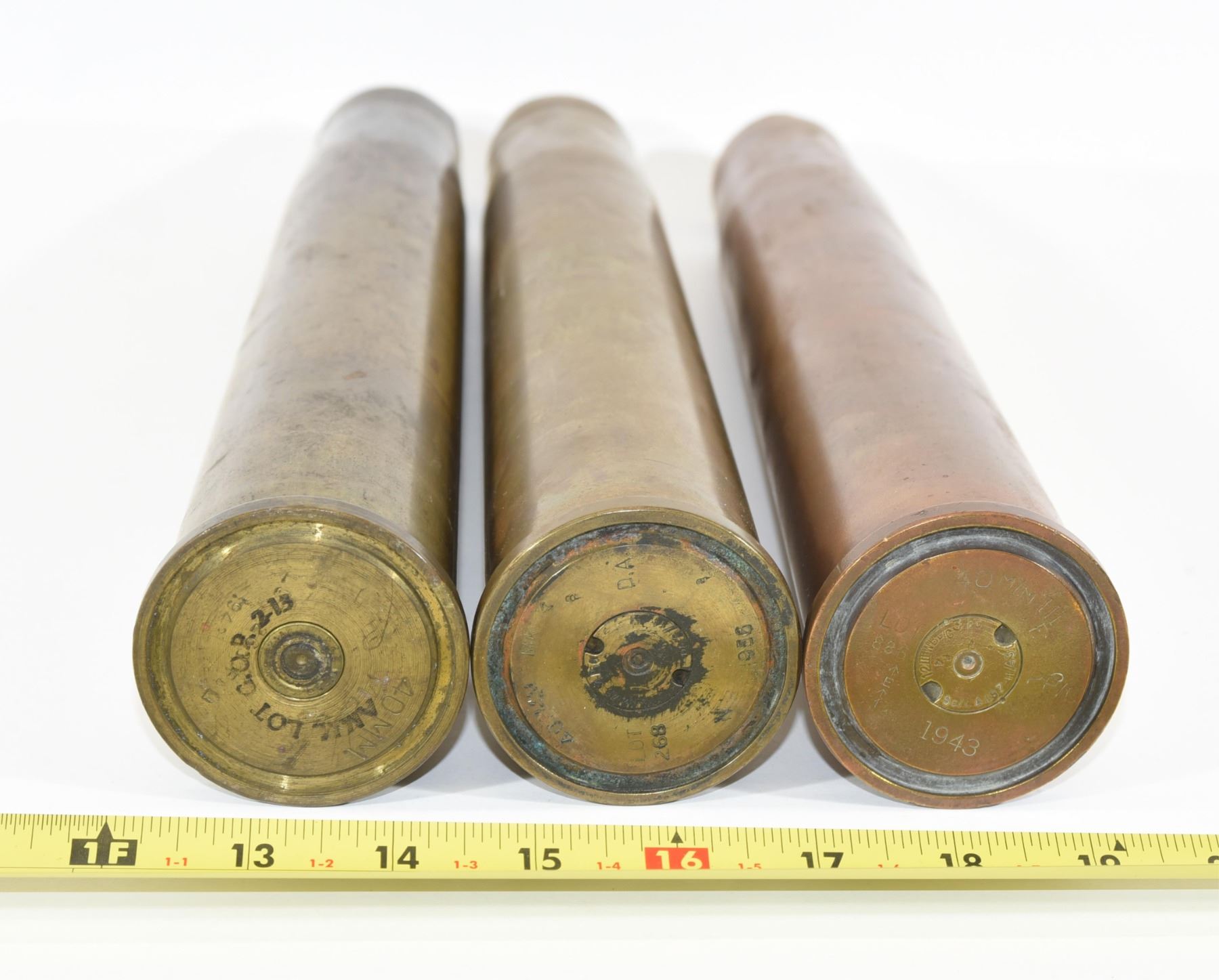 Lot 1163 3 WWII 40mm M25 Bofors Artillery Shell