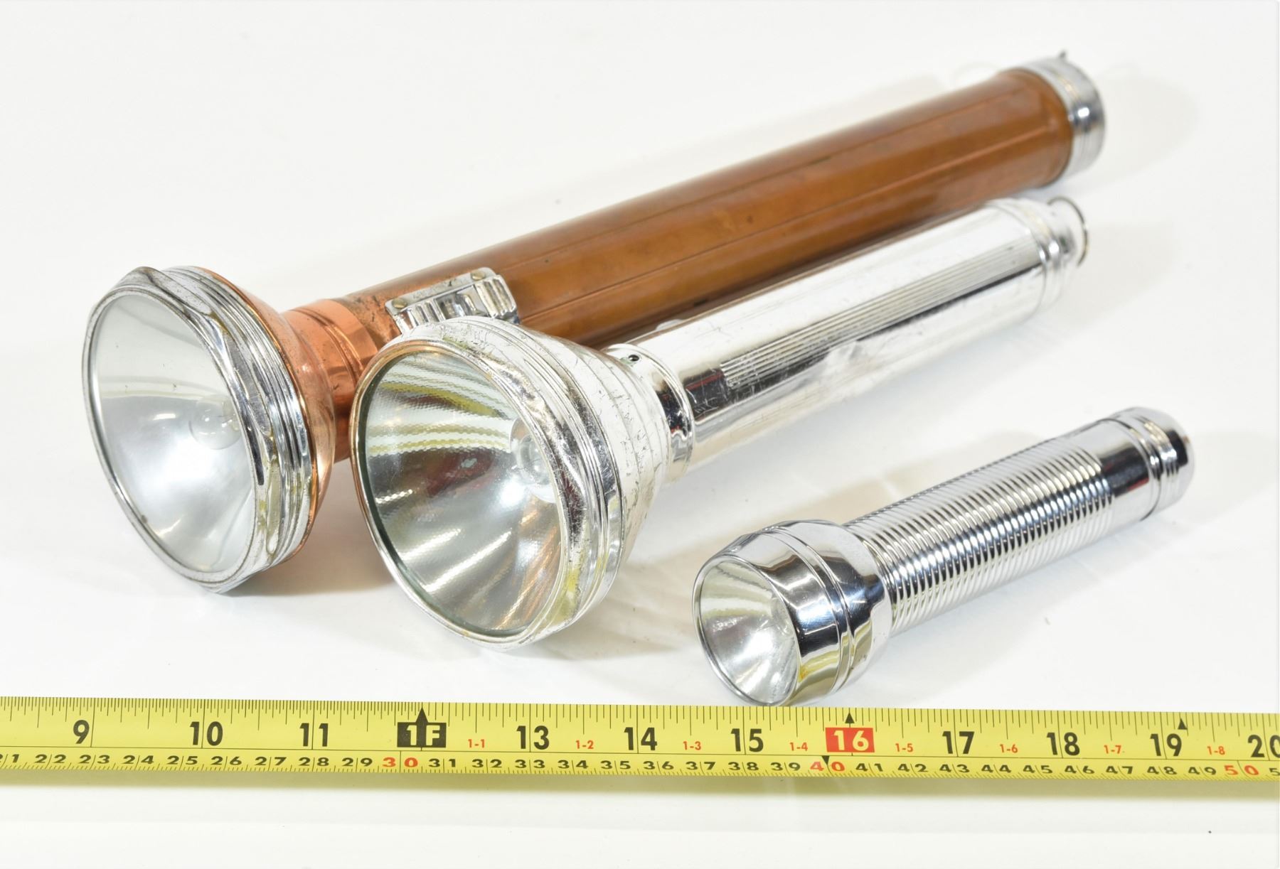 1) Homart 14"long 3" head. 2) Eveready 14"long 3" head. 3) Ray-o-vac 6" long.