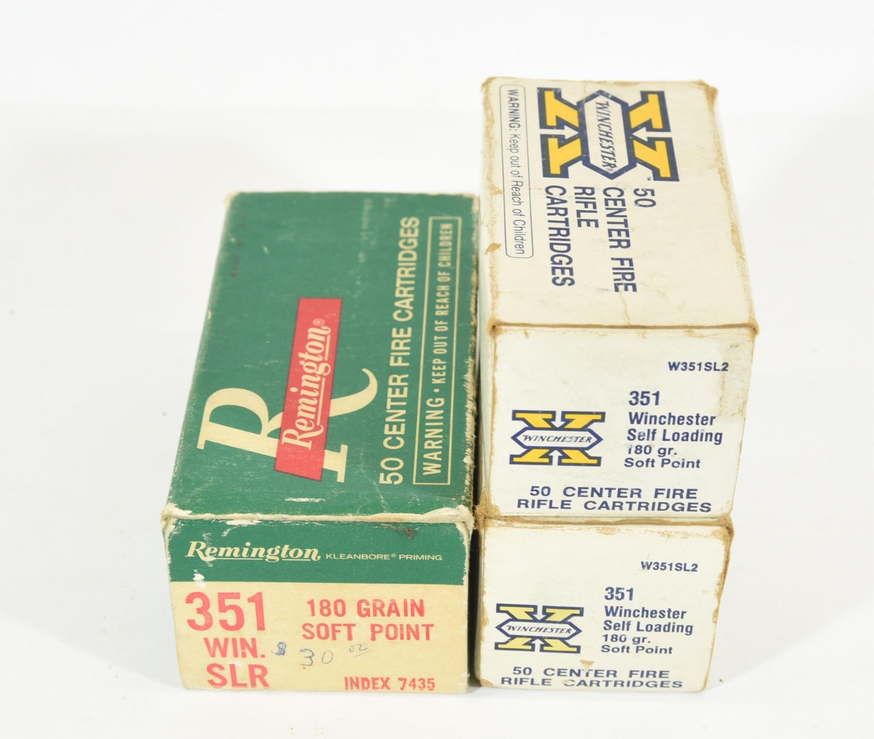 11-round box of Winchester 351 Win SL 180gr soft point. 50 -round box of Winchester 351 Win SL 180gr soft point. One 50 round box of Remington 351 Win SL 180gr Soft Point.