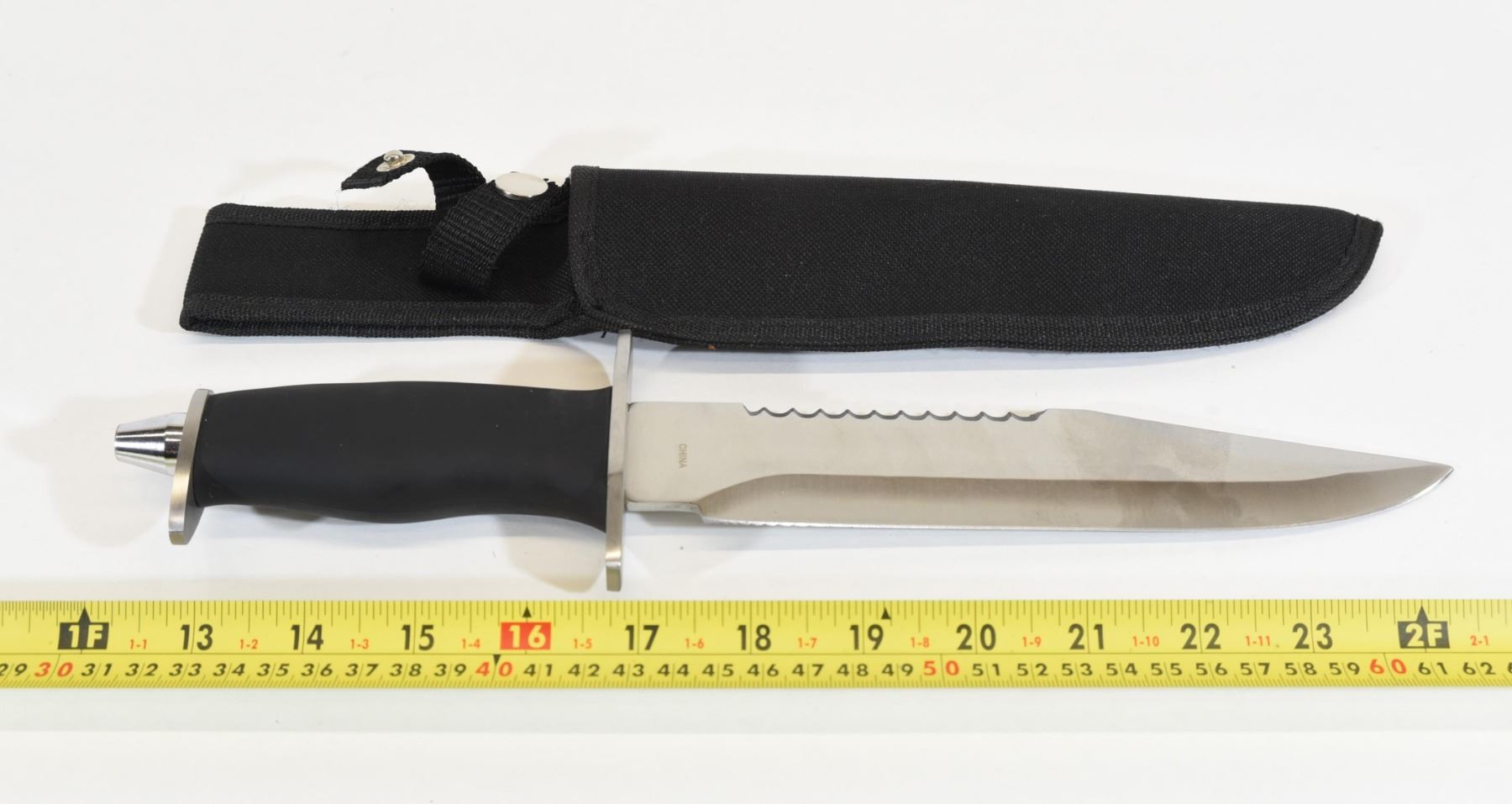 Blade is 7" long. Overall length is 13". Includes sheath.