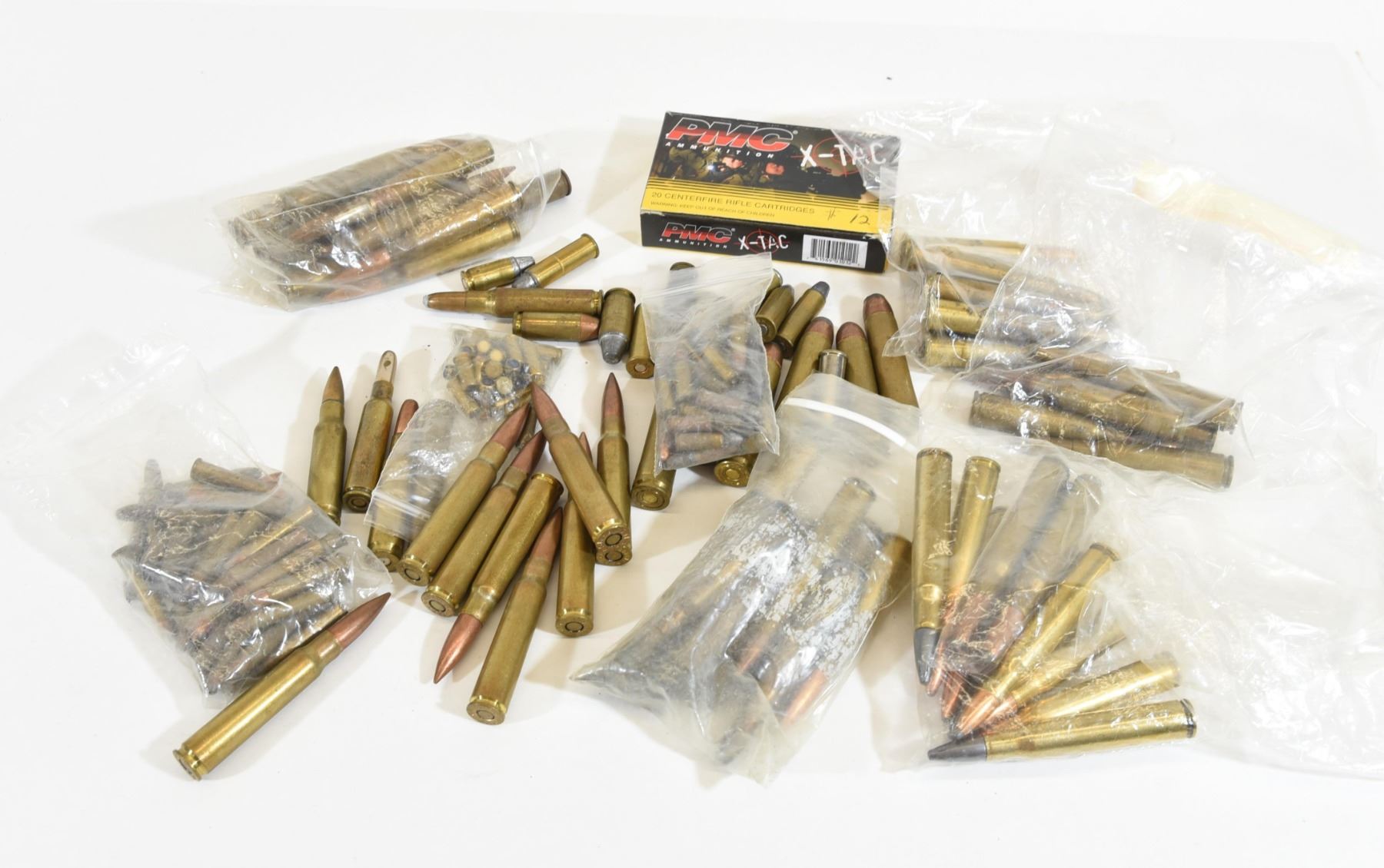 1) 6 rounds 223. 2) 7 rounds 38 Special. 3) 2 rounds 45 acp. 4) 6 rounds .458×2-inch American. 5) 25 rounds assorted 22LR. 6) 6 rounds 303 British. 7) 3 rounds 303 British blanks. 8) 22 rounds 8mm Mauser. 9) 11 rounds 30-06. 10) 6 rnds 6.5 x 55 11) 21 rounds 22short shot shells. 12) 4 rounds 308. 13) 1 round 30-30. 14) 10 unknown rounds. 15) 33 rounds 22mag.