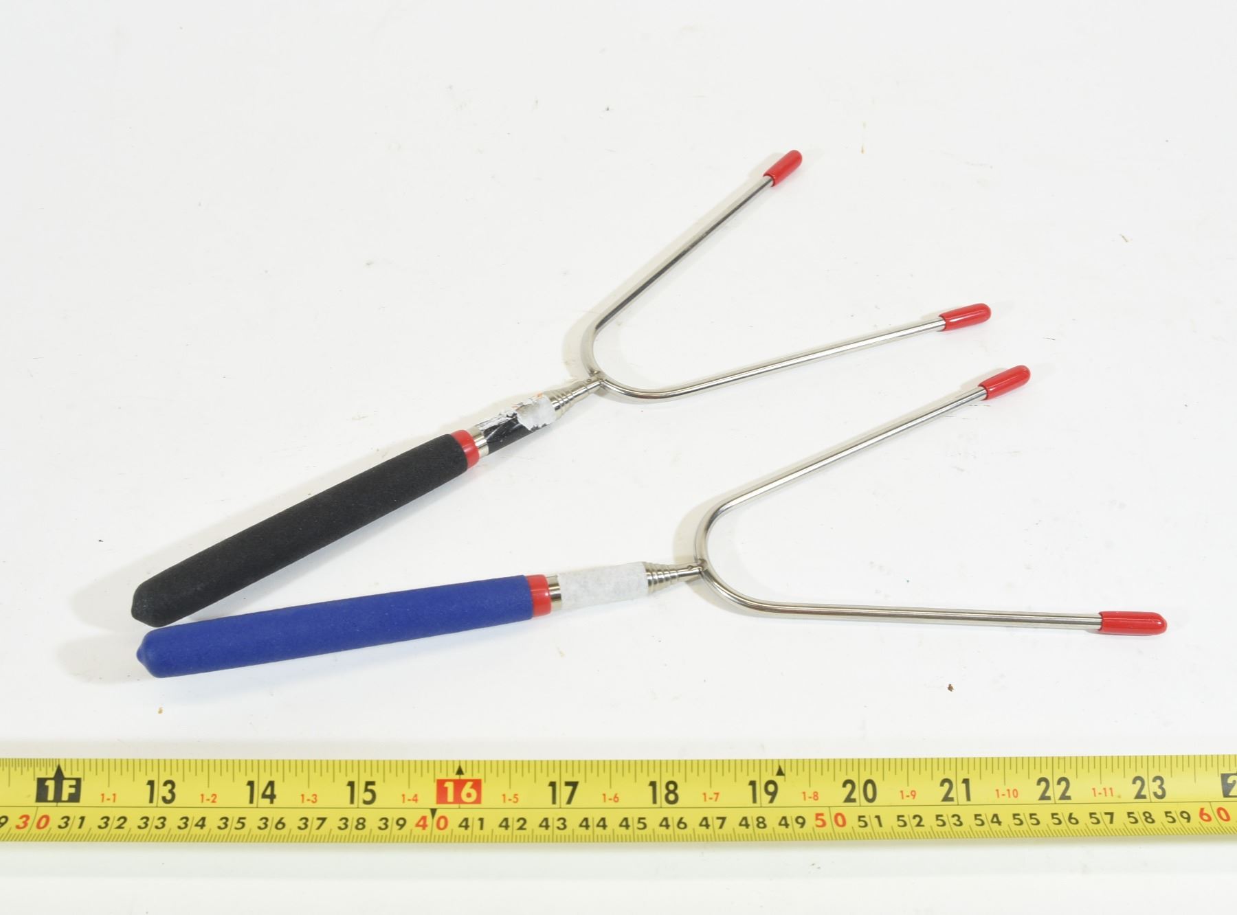 Two extendable hotdog roasting sticks. 11.5" collapsed. 35.5" extended.