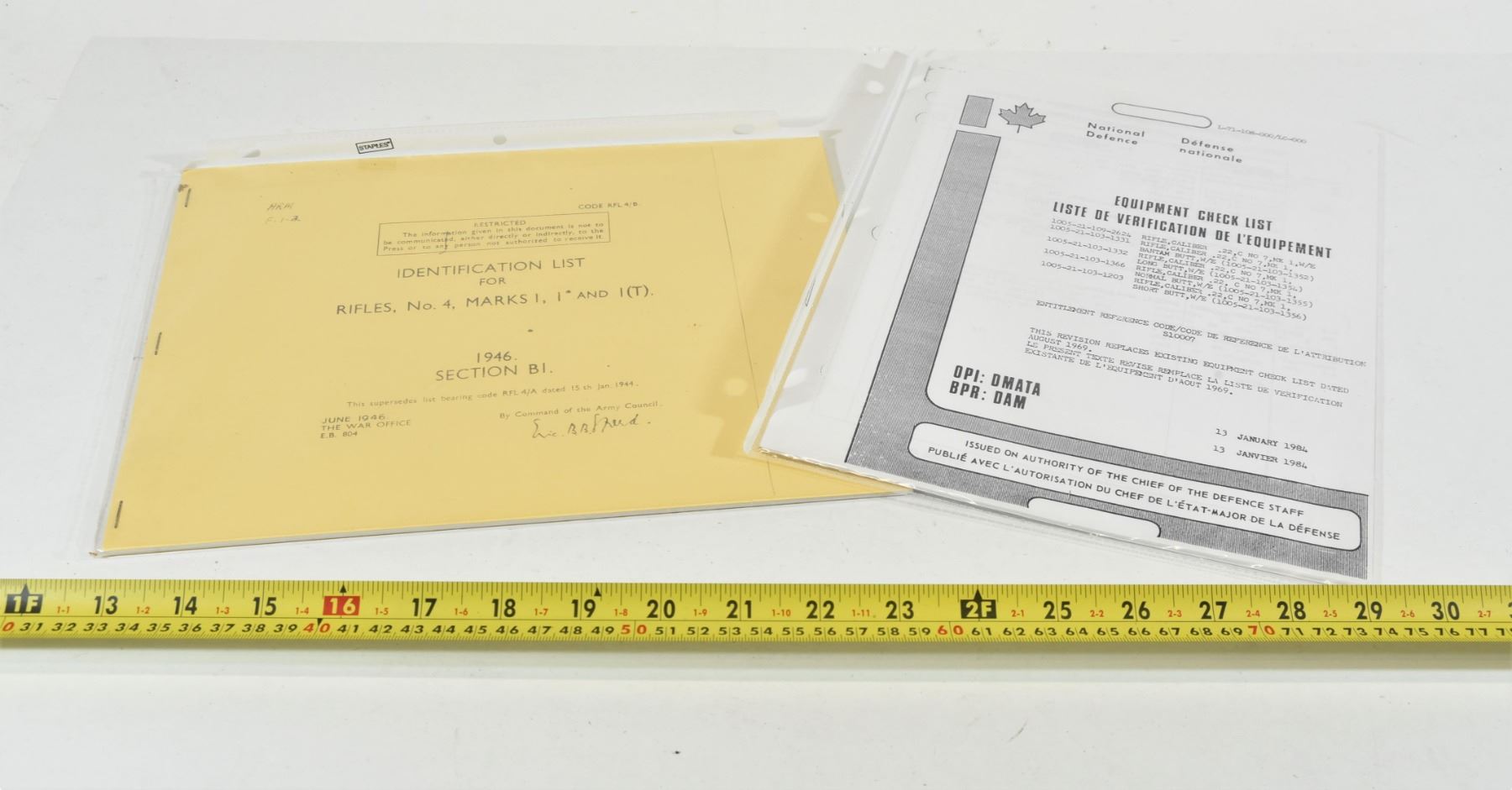 National defence equipment check list for Enfield No. 7 MK 1. Identification list for rifles No 4 MK 1 (IT) the war office.