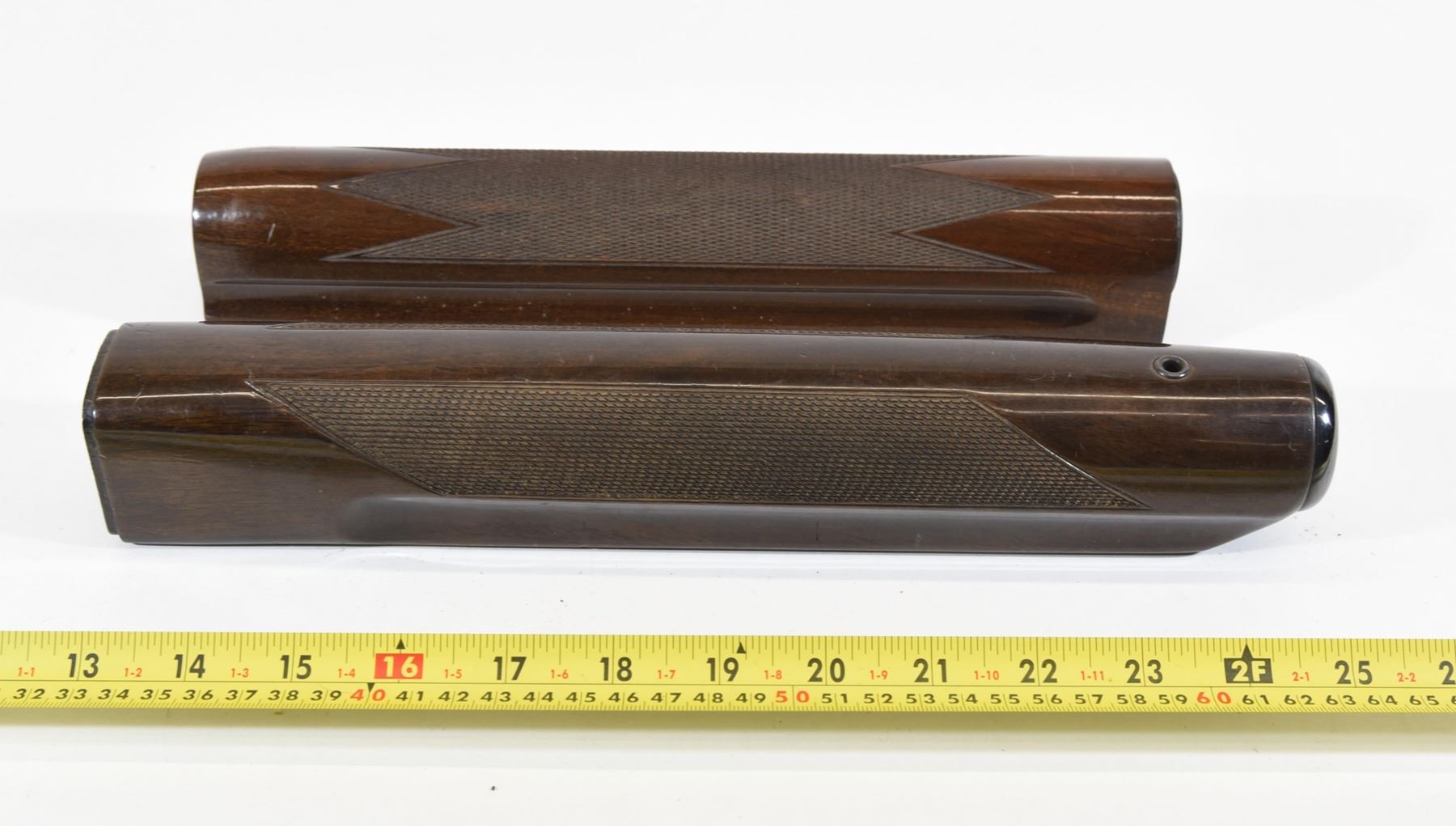 1) Browning Auto 5, has a crack on the inside of muzzle end and some light dents and scratches. 2) Beretta A 302 has some light handling marks.