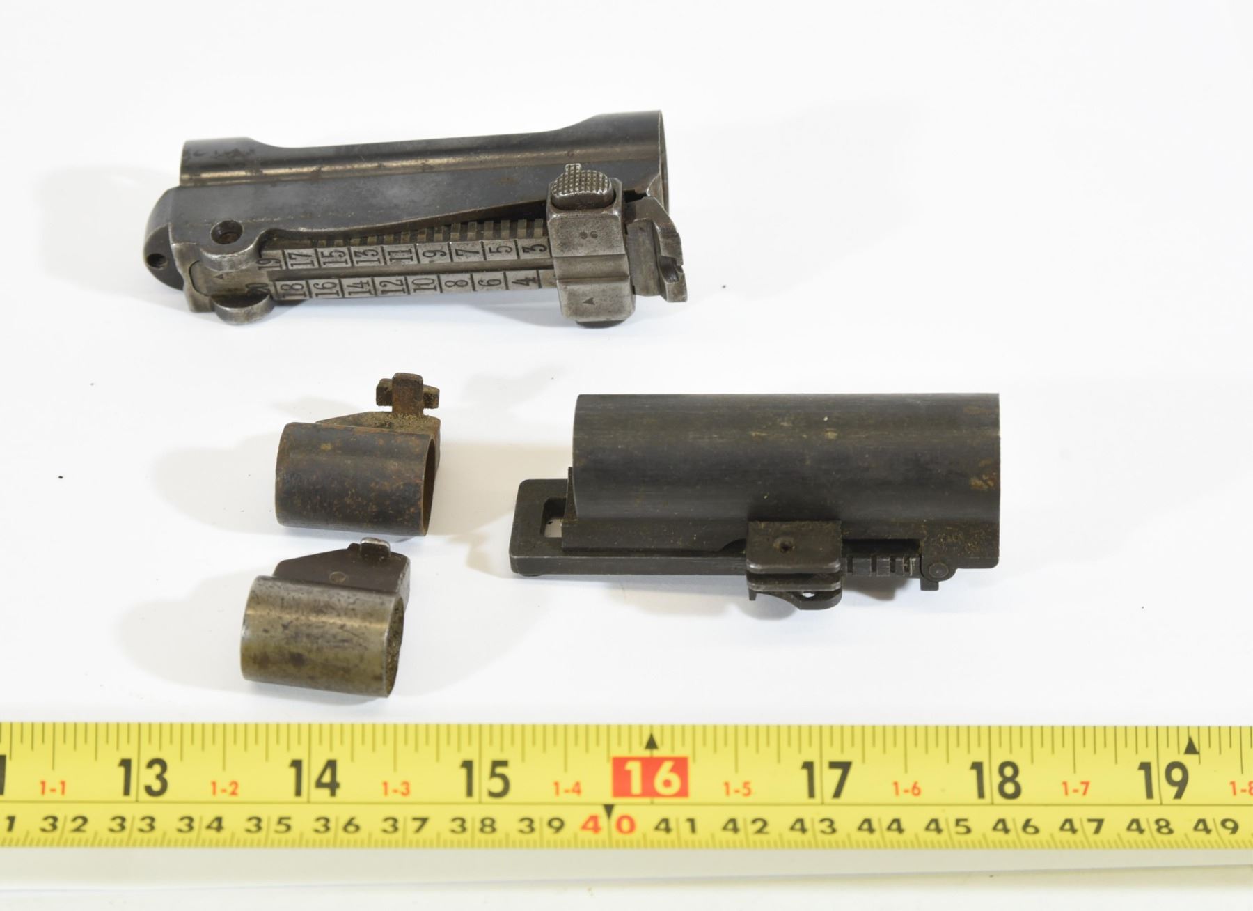 1) 2 Mauser type back sights. 2) 2 Military front sights.