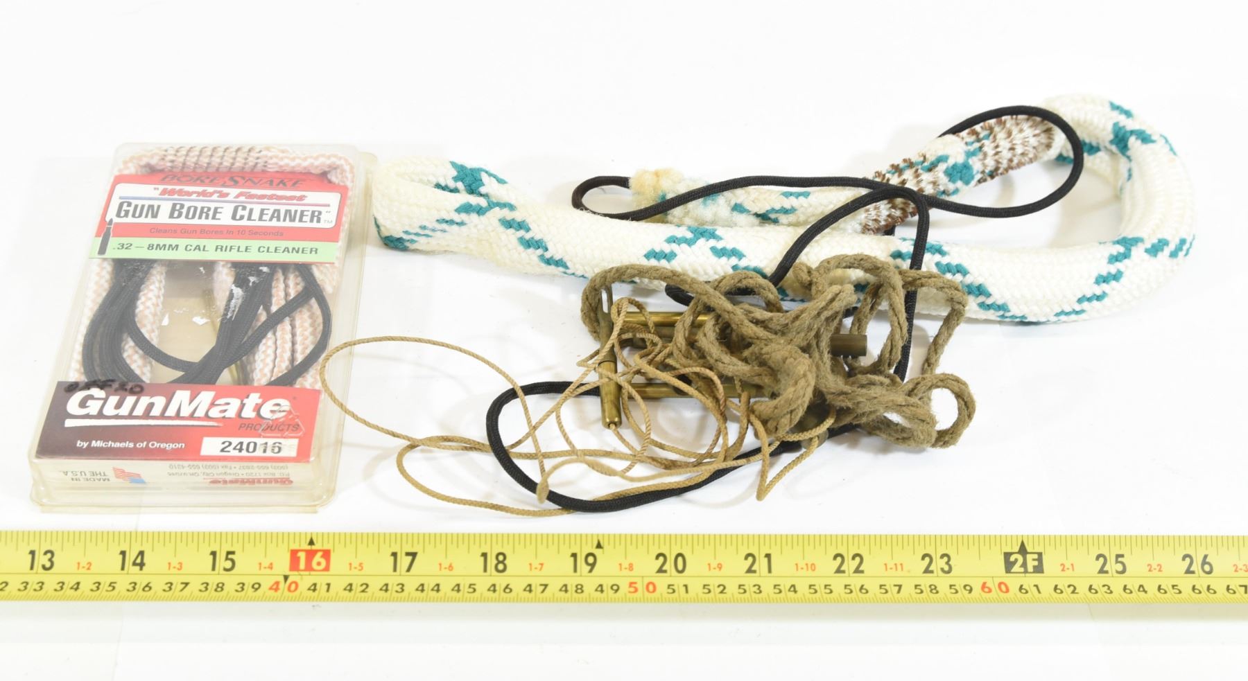 Three unknown pull-through bore cleaning ropes. One unknown cal bore snake. One 8mm bore snake.
