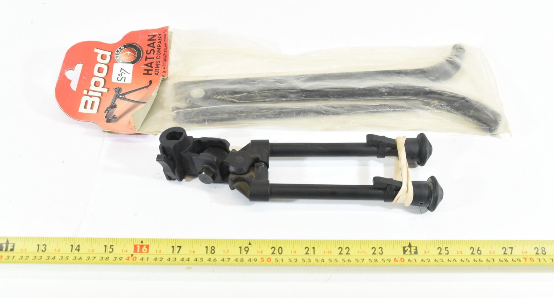 One folding metal bipod with 9" legs. One Hatsan plastic bipod with 11" legs.