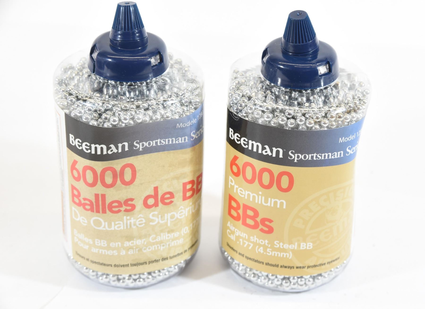 Two 6000-piece bottles of Beeman .177cal steel BBs.