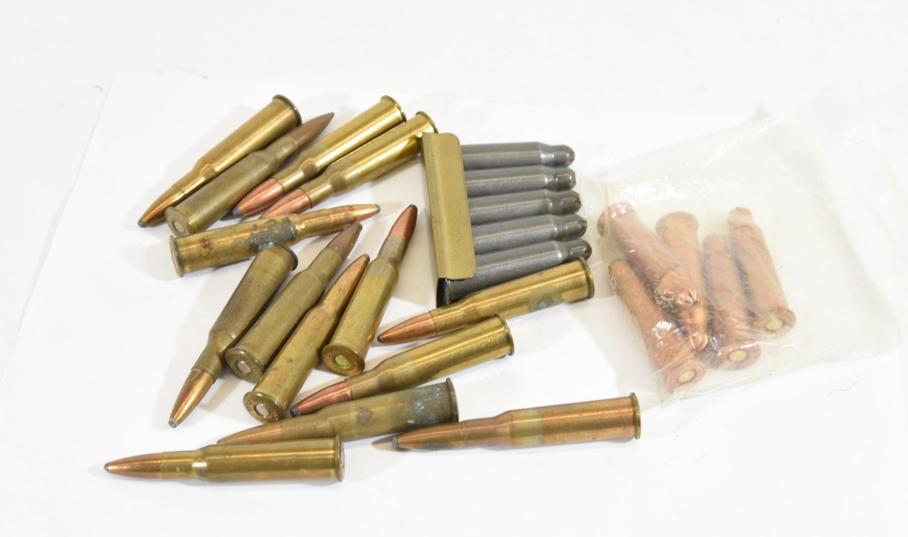 14 rounds 7.62x54R soft point. 5 rounds brass 7.62x54R blanks. 5 rounds steel 7.62x54R blanks.
