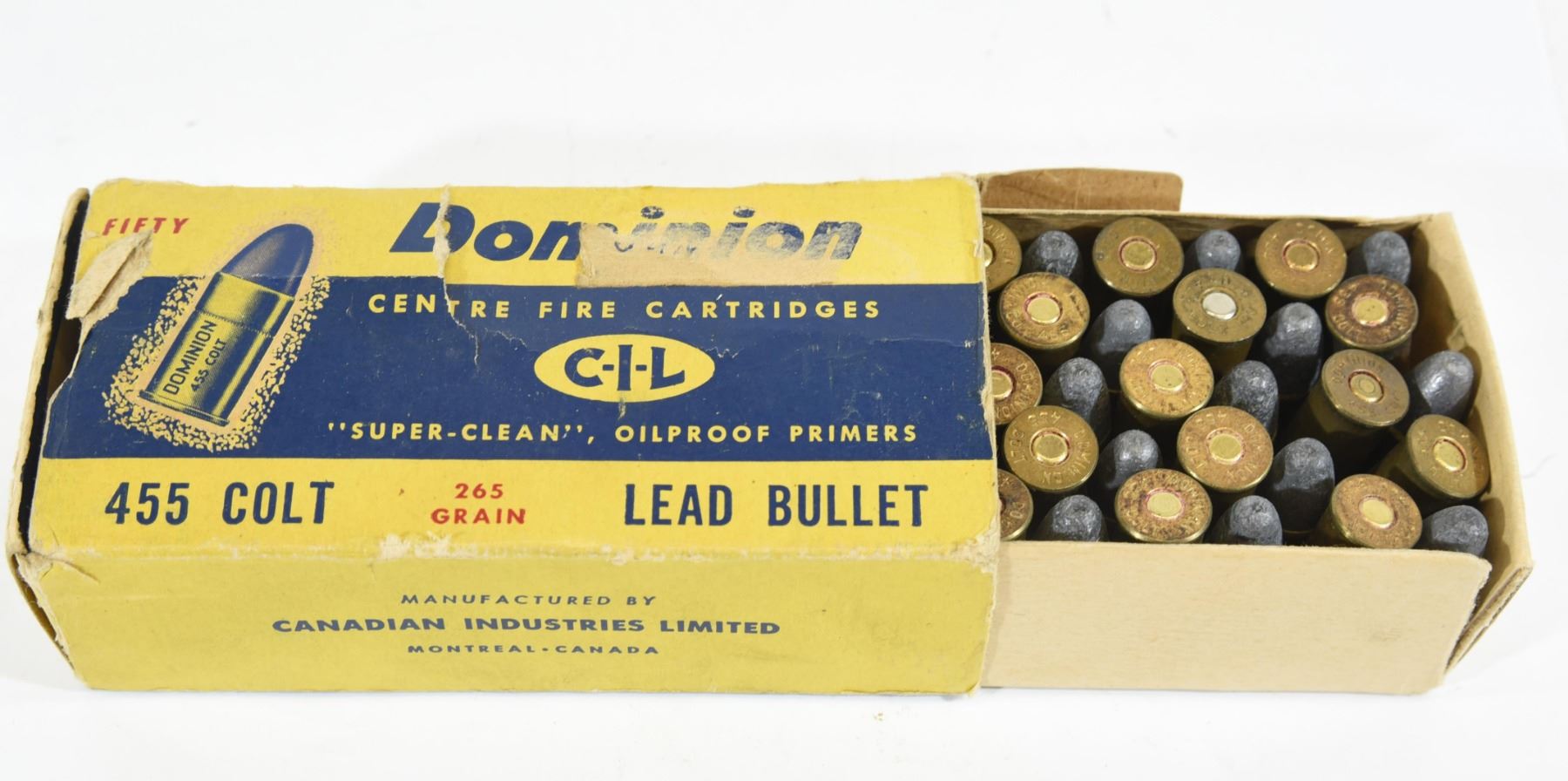 One 50-round box of CIL Dominion 455COlt 265gr lead bullet.