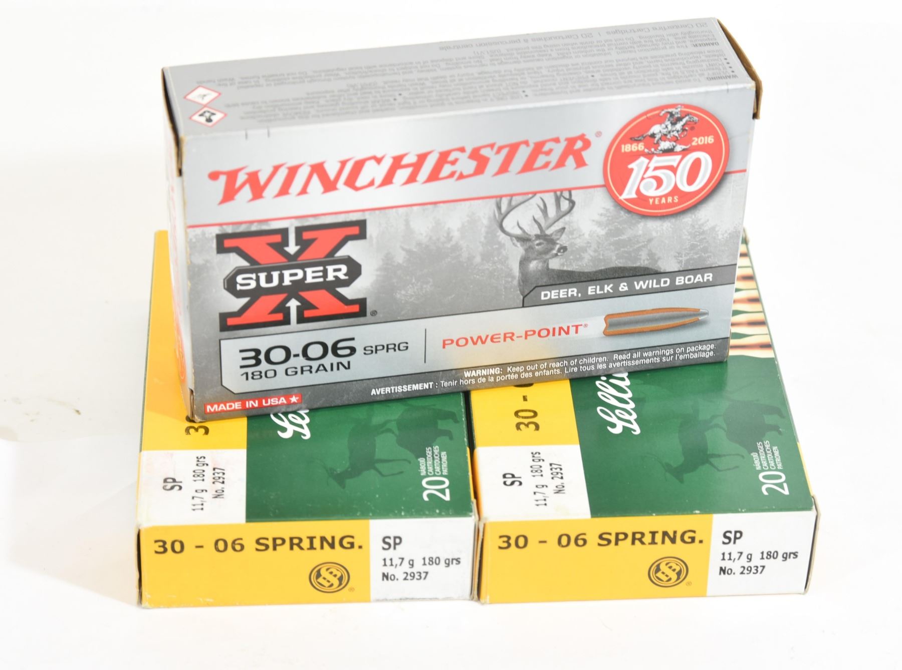 1) 34 rounds Sellier and Bellot 30-06 Springfield 180gr SP. 2) 26 empty brass.