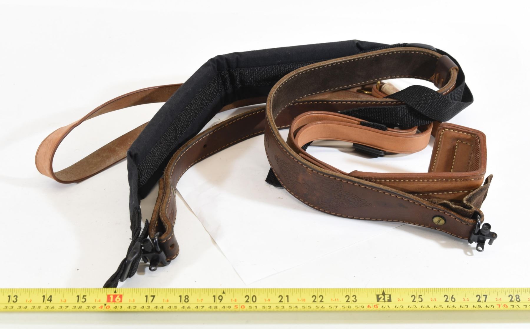 1) Sako leather strap with quick detach swivels. 2) Nylon rifle sling. 3) Leather shotgun butt stock sling.