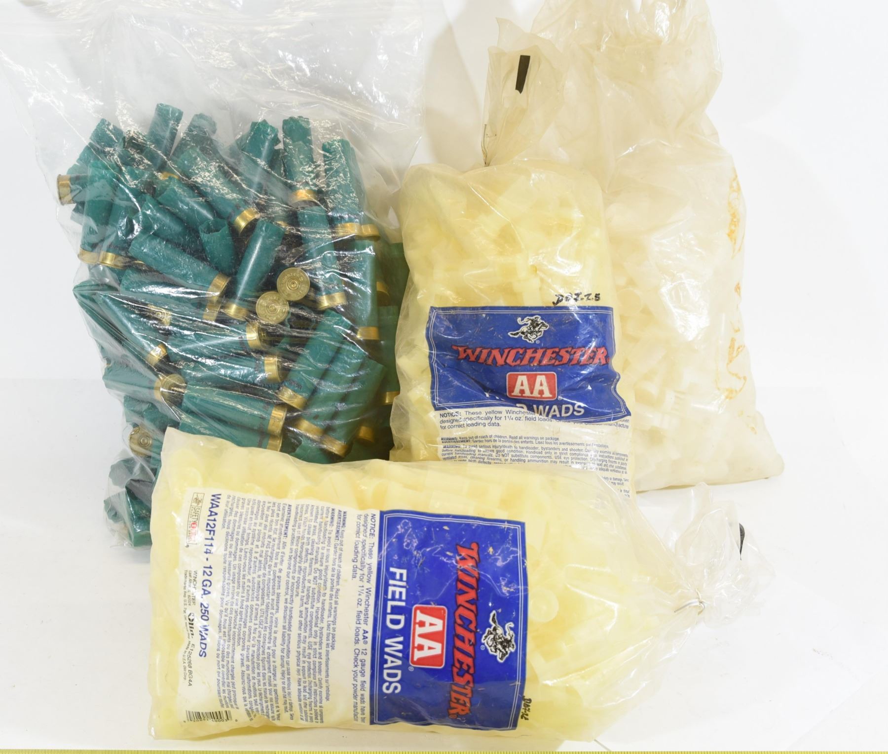 200 pieces Remington 12ga once-fired hulls. 750 Winchester 12ga wads.