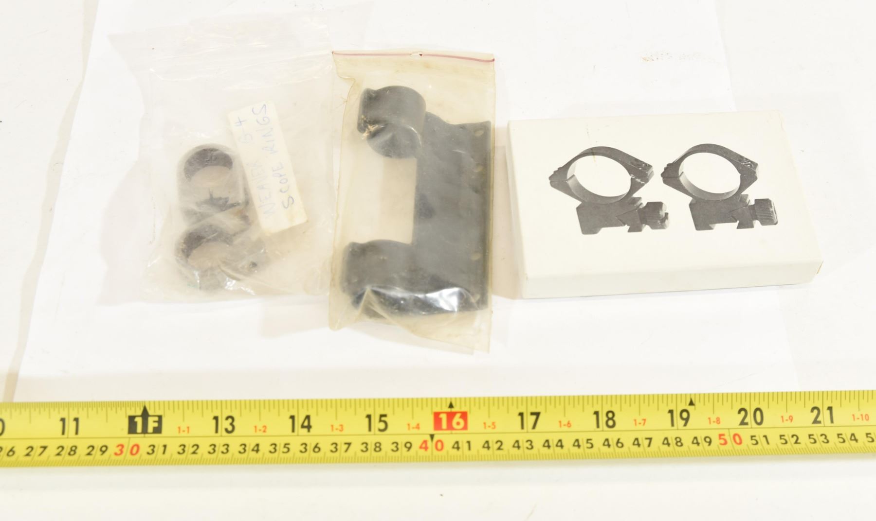 Set of Weaver B-4 3/4" scope rings. Set of Weaver N-1 side base & 3/4" scope rings. Set of 7/8" scope rings.