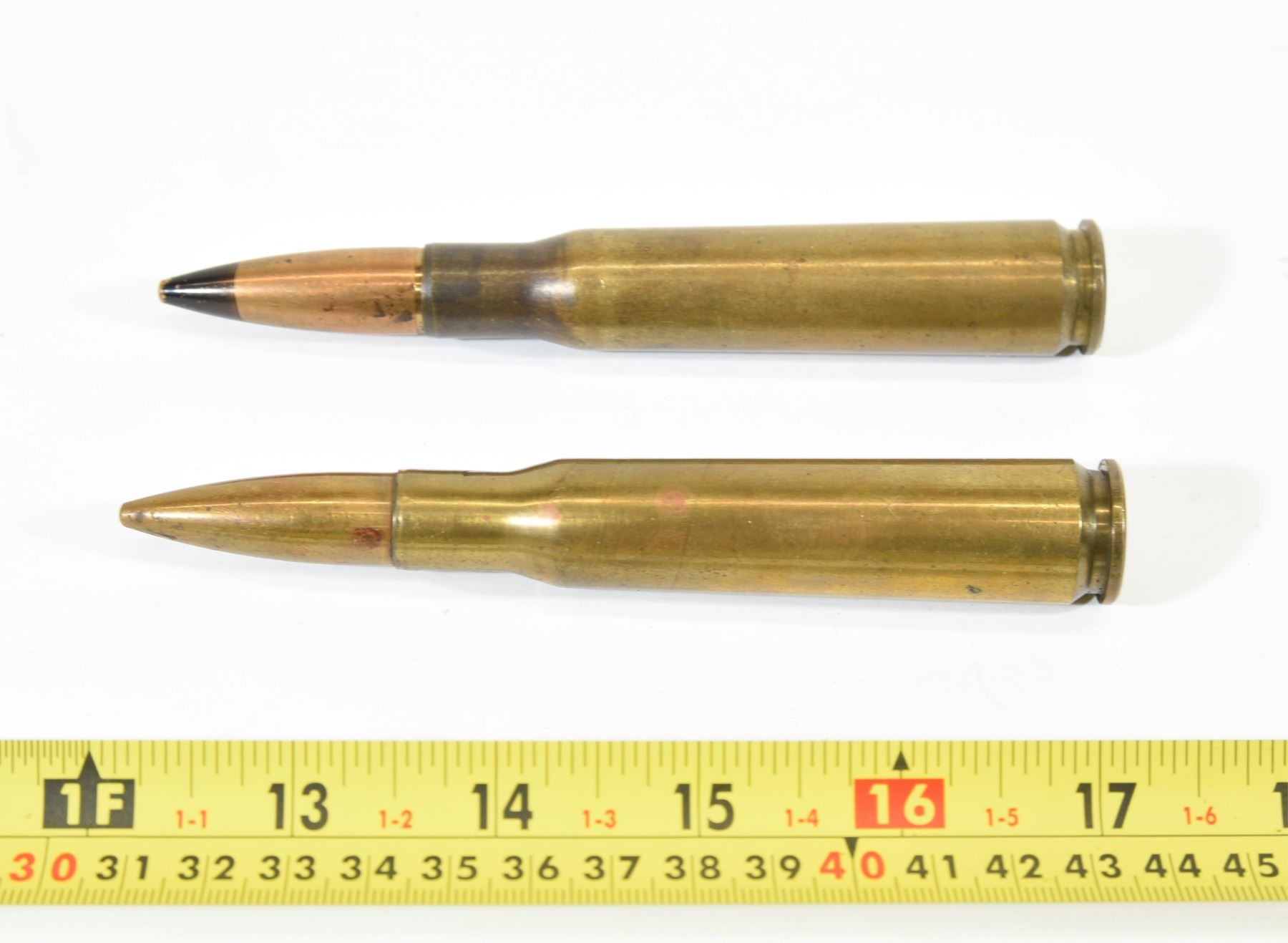 One round 50cal BMG FMJ. One round 50cal BMG armour piercing 1943 Salt Lake Arsenal.