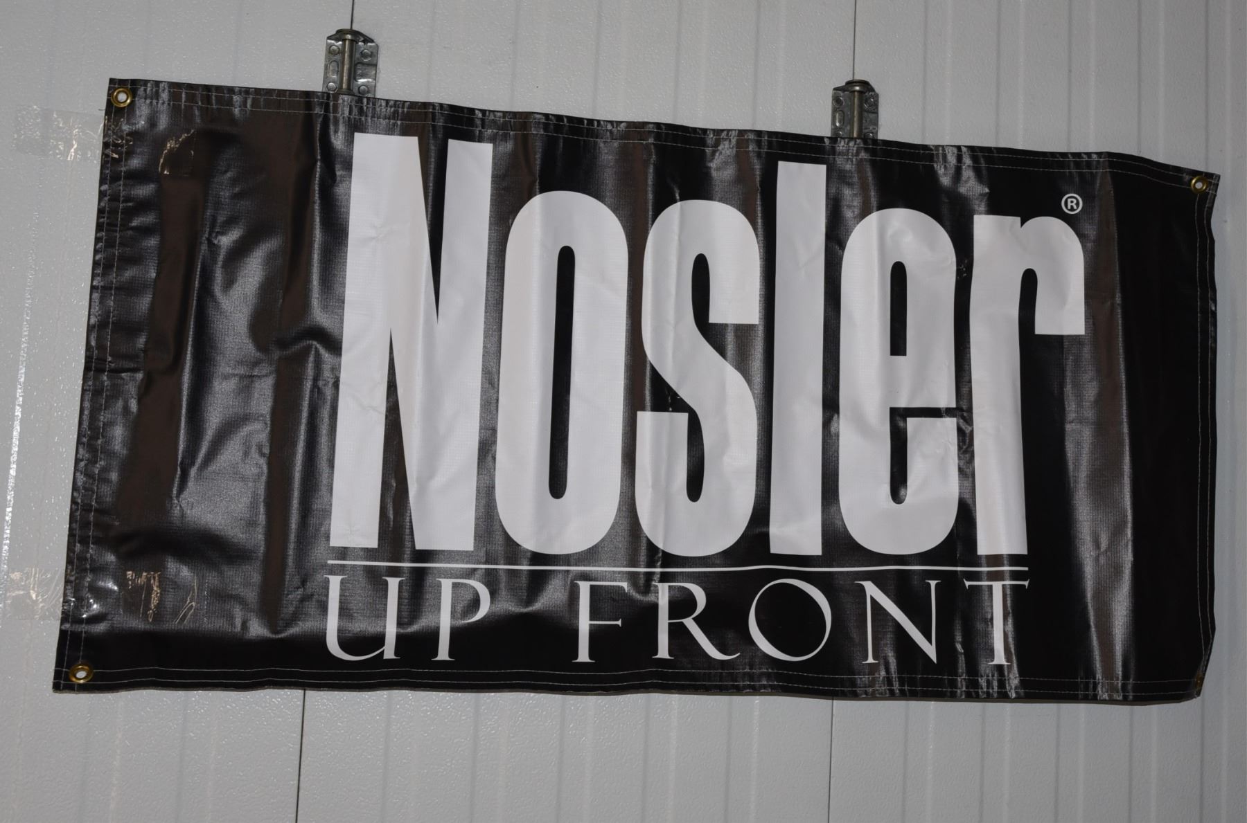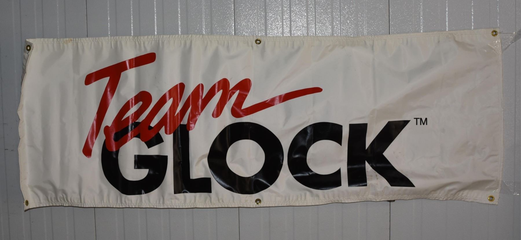 Team Glock vinyl banner approximately 38" x24". Nosler Bullets vinyl banner approximately 46" x 23".