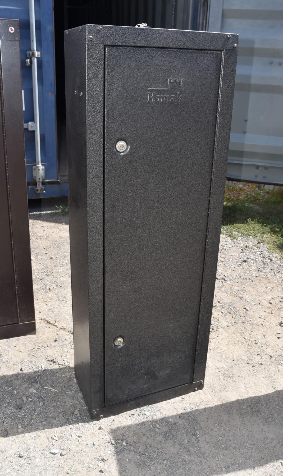 Gray. 2 keys included. Holds 7 long guns. 53" x 19" x 10".WILL NOT SHIP. MUST PICK UP.