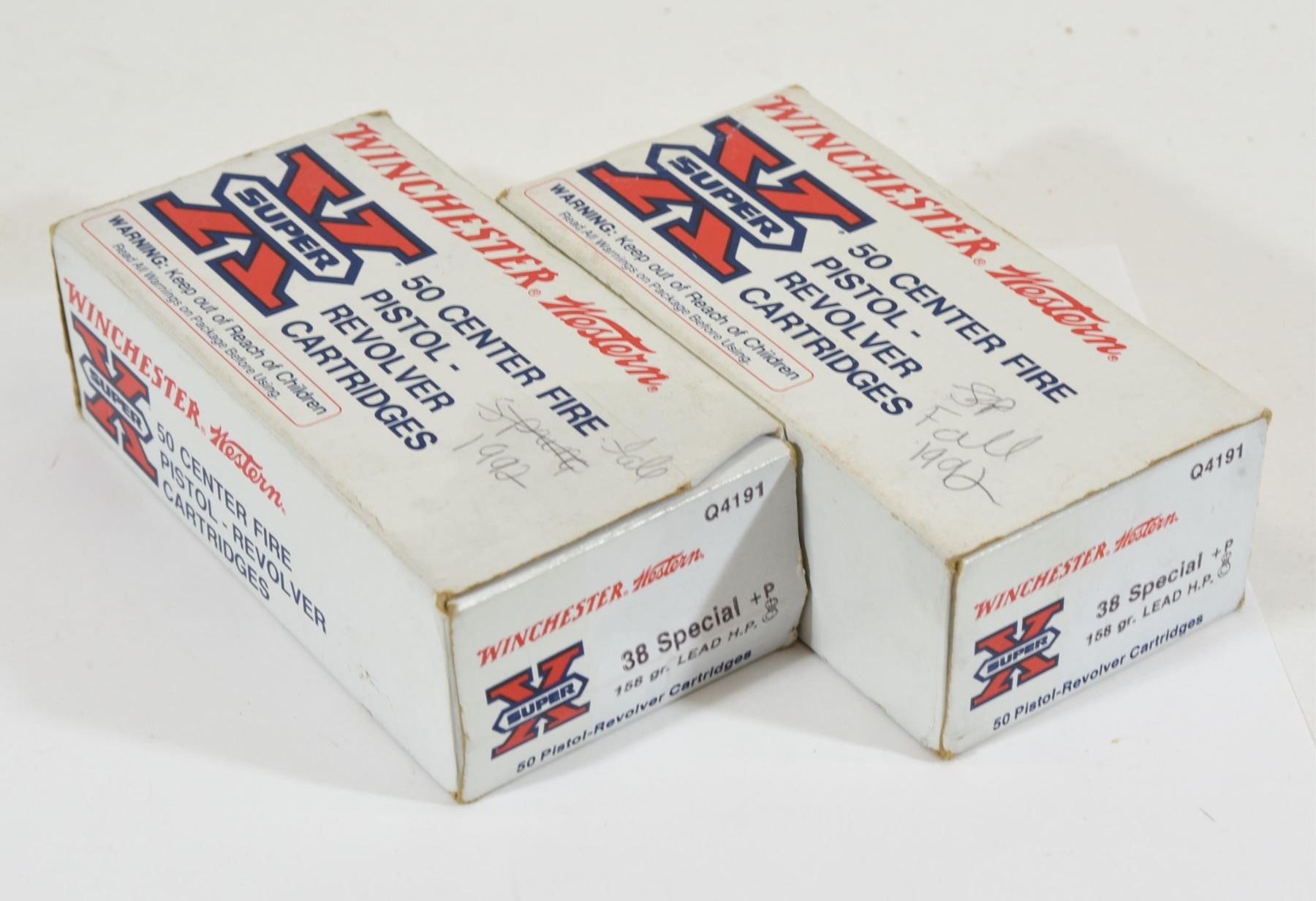 Two 50-round boxes of Winchester Super X 38SPL 158gr lead HP.