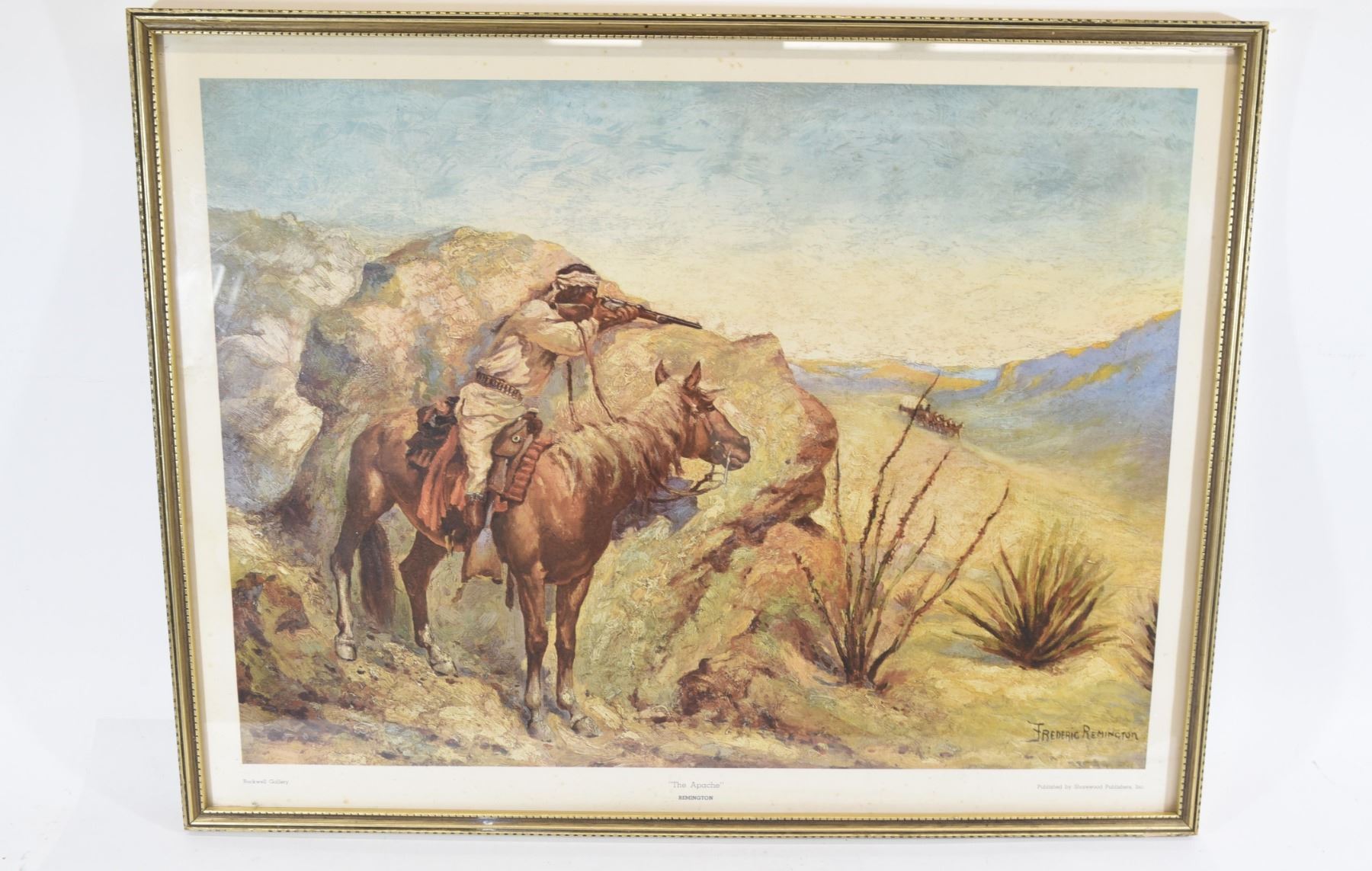 "The Apache" antique print by Fredrick Remington. 25" long x 19" high.
