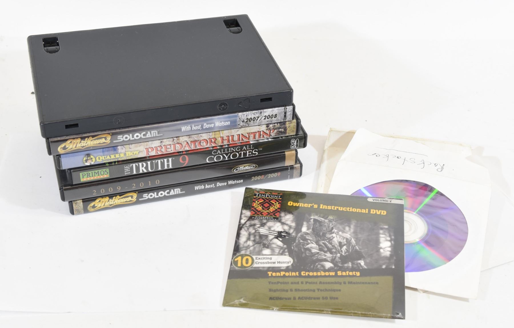 1) Catch Us If You Can Invitational 2, 19 Bow Hunts. 2) Catch Us If You Can 2009 - 2010. 3) Primos The Truth 9 Calling All Coyotes. 4) Quaker Boy Predator Hunting. 5) Catch Us If You Can, 20 Bow Hunts. 6) Sword DVD. 7) Tenpoint owner's instructional DVD. 8) Producing Trophy Whitetails. 9) Gibbs Cartridges. 10) Rack Stacker.