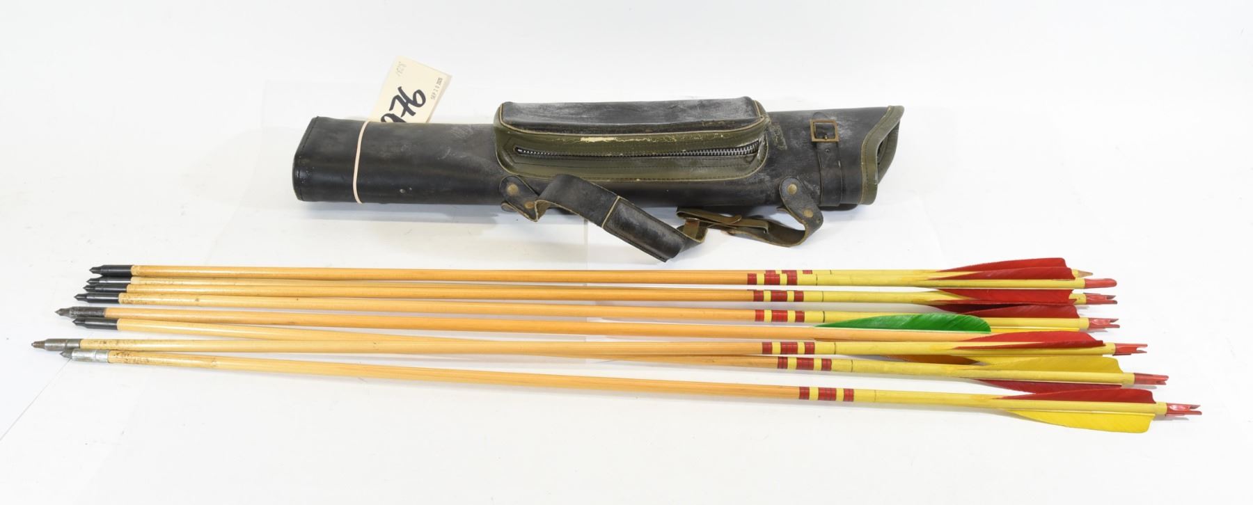 Lot 1976 Black Leather Quiver with 9 Wooden Arrows