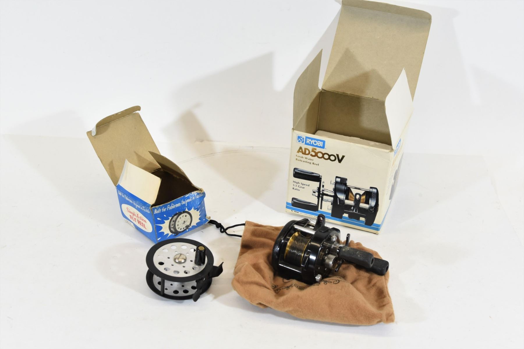 1) Ryobi AD5000V Reel. 2) Single Action Fly Reel.