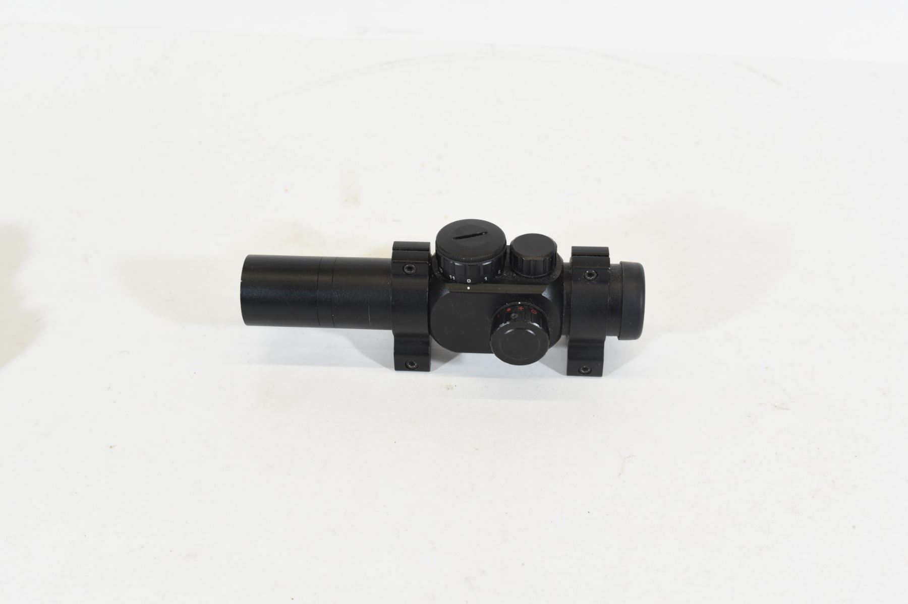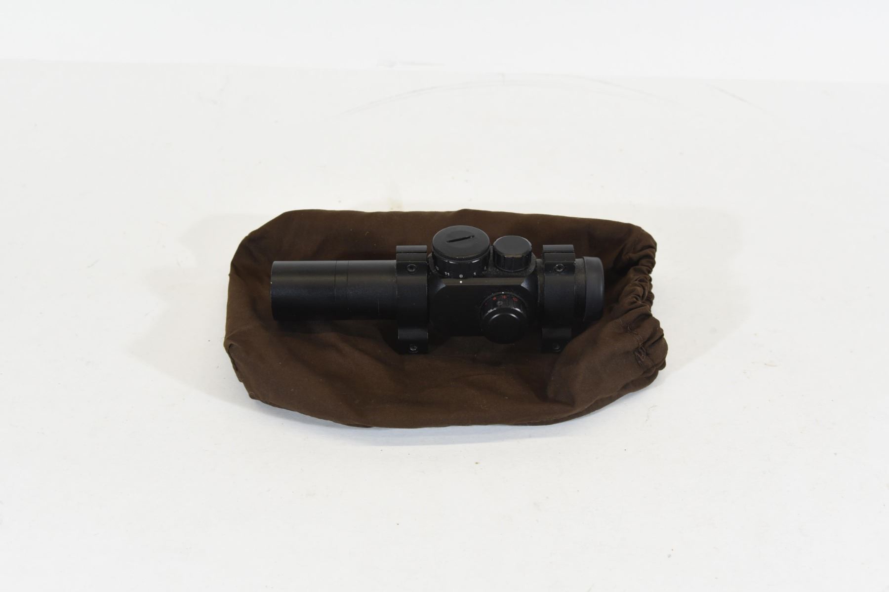 1 x 28. Has choice of large or small dot, cross hairs or circle. Good working condition. Comes with rings.