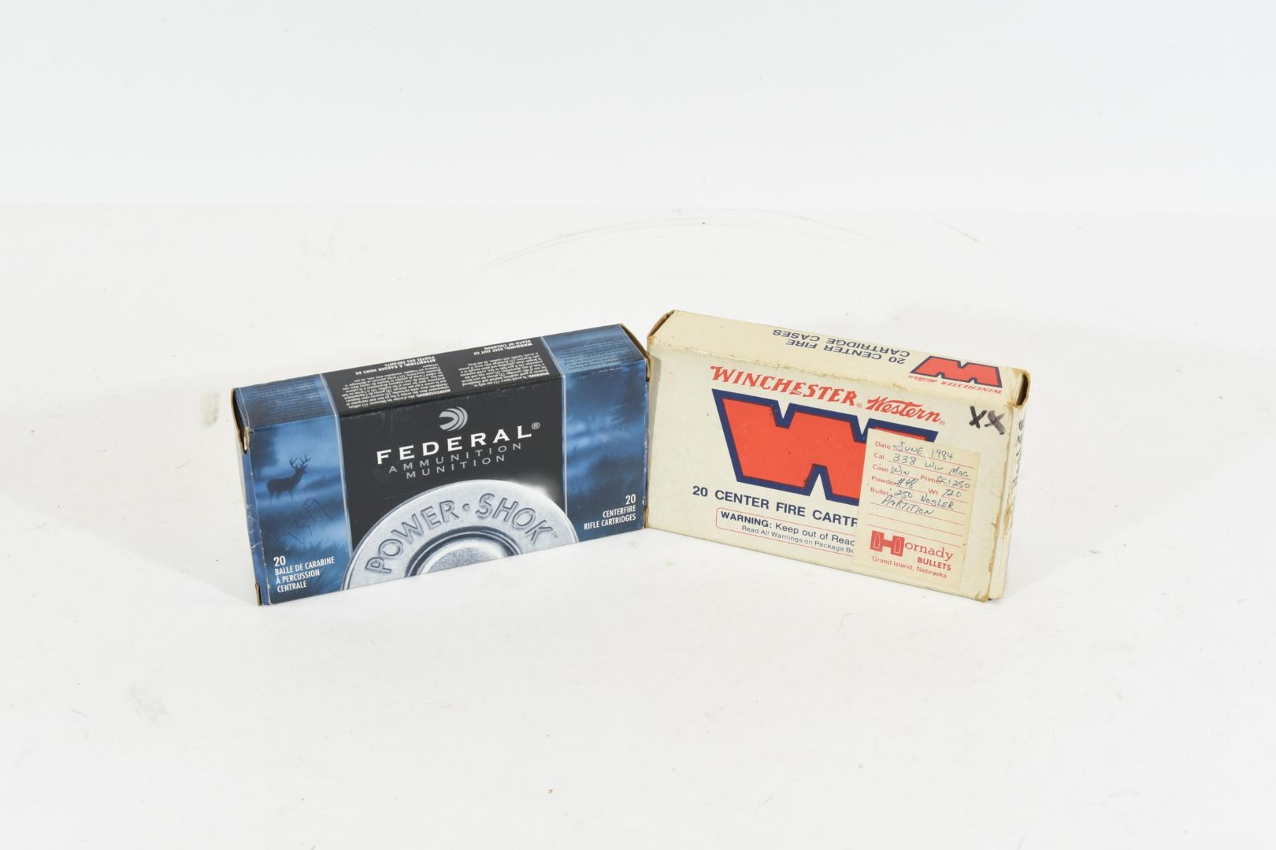 1) 15 rounds Winchester reloads and 5 pieces of brass. 2) 10 rounds Federal 225 grain factory and 3 pieces of brass.