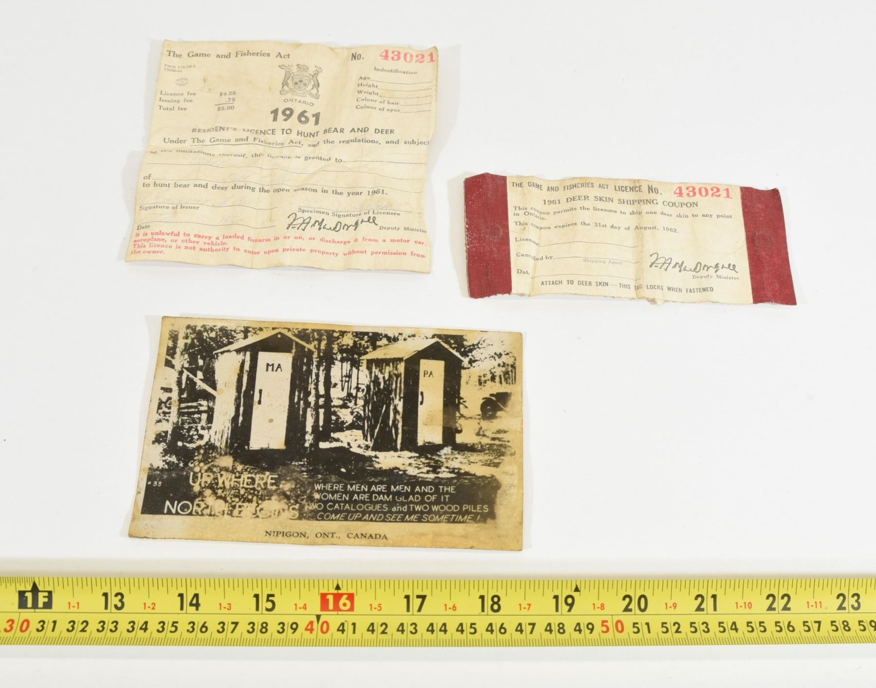 1961 deer and bear resident's licence to hunt.