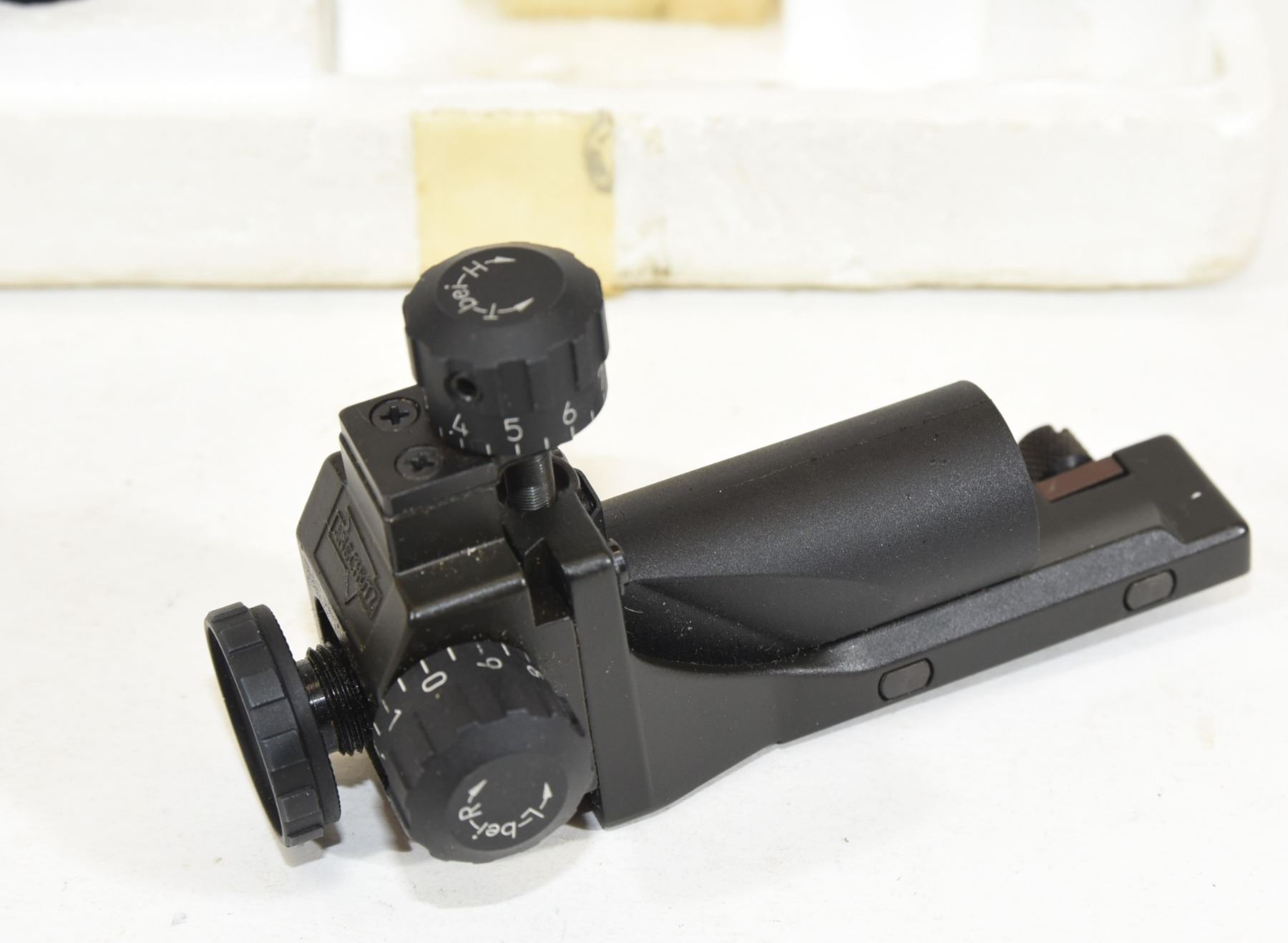 Rear sight 6805 with anti-glare tube. Rear sight housing made of aluminum. Front sight rotationally adjustable. Precision rear aperture sight with 10 clicks per full turn changing the point of impact per click.