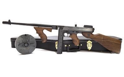 Auto Ordnance, T1, Semi-automatic, 45ACP, 16.5" Barrel, Black Finish, Walnut Stock, Adjustable Sights, 1-20Rd Stick Magazine & 1-50Rd Drum, 2 Magazines, Includes Violin Case