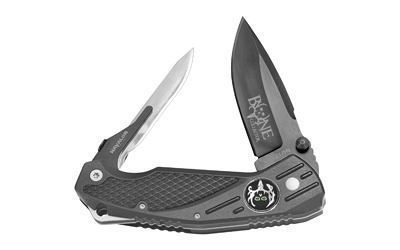 Havalon, Bone Collector Rebel, Dual Folding Knife, 3 1/16" AUS-9 Stainless Drop Point Blade with Black Ti Finish and Piranta 60A or Gut Hook Blade, Black Fiberglass Handle with Black Rubber Grips, Includes 7-60A Blades and 2 Gut Hooks, and Bone Collector Signature Zipper Holster