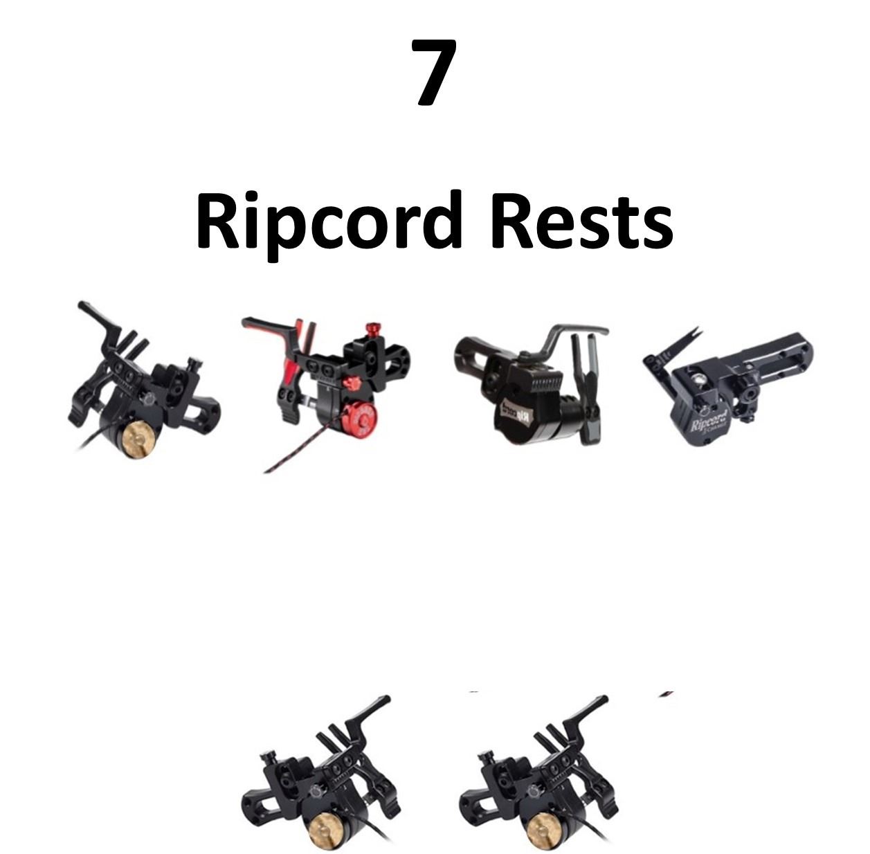 7 x Ripcord Rests, 4 x ACE Micro Adj, 2-Lost Camo RH, 2-Red RH, 1 x SOS Black LH, 1 x X-Factor Black RH, 1 x Lost Camo LH