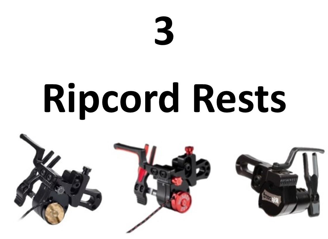 3 x Ripcord Rests, 1-ACE Micro Adj Lost Camo RH, 1-Red RH, 1-SOS Black LH